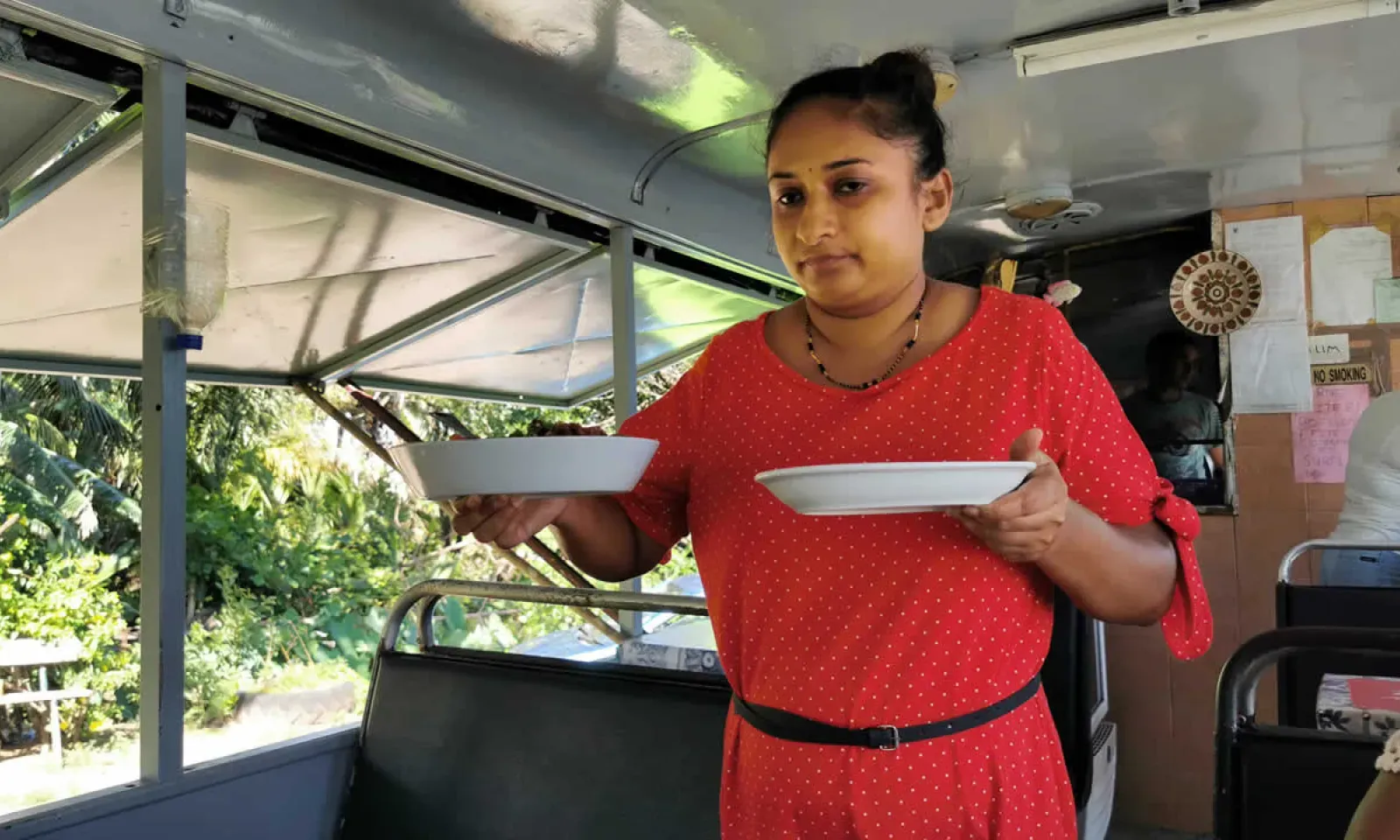 C’est Mala Gobardhen, 65 ans, qui est la propriétaire du Bus Snack. Étant bonne cuisinière et ne sachant pas comment subvenir aux besoins de sa famille, elle décide avec l’aide de son mari d’ouvrir un tricyle pour vendre des gâteaux.