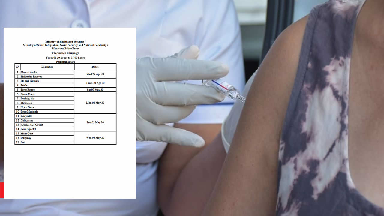 Le ministère de la Santé, la police et le ministère de la Sécurité sociale ont remis à jour le calendrier de vaccination pour les seniors. Quelques changements sont introduits au niveau des dates de la campagne qui a repris mercredi. Selon ce nouveau calendrier, elle prendra fin samedi le 9 mai avec, notamment, les régions de Glen Park, Réunion, Malherbes, Cite Joachim et La Brasserie.