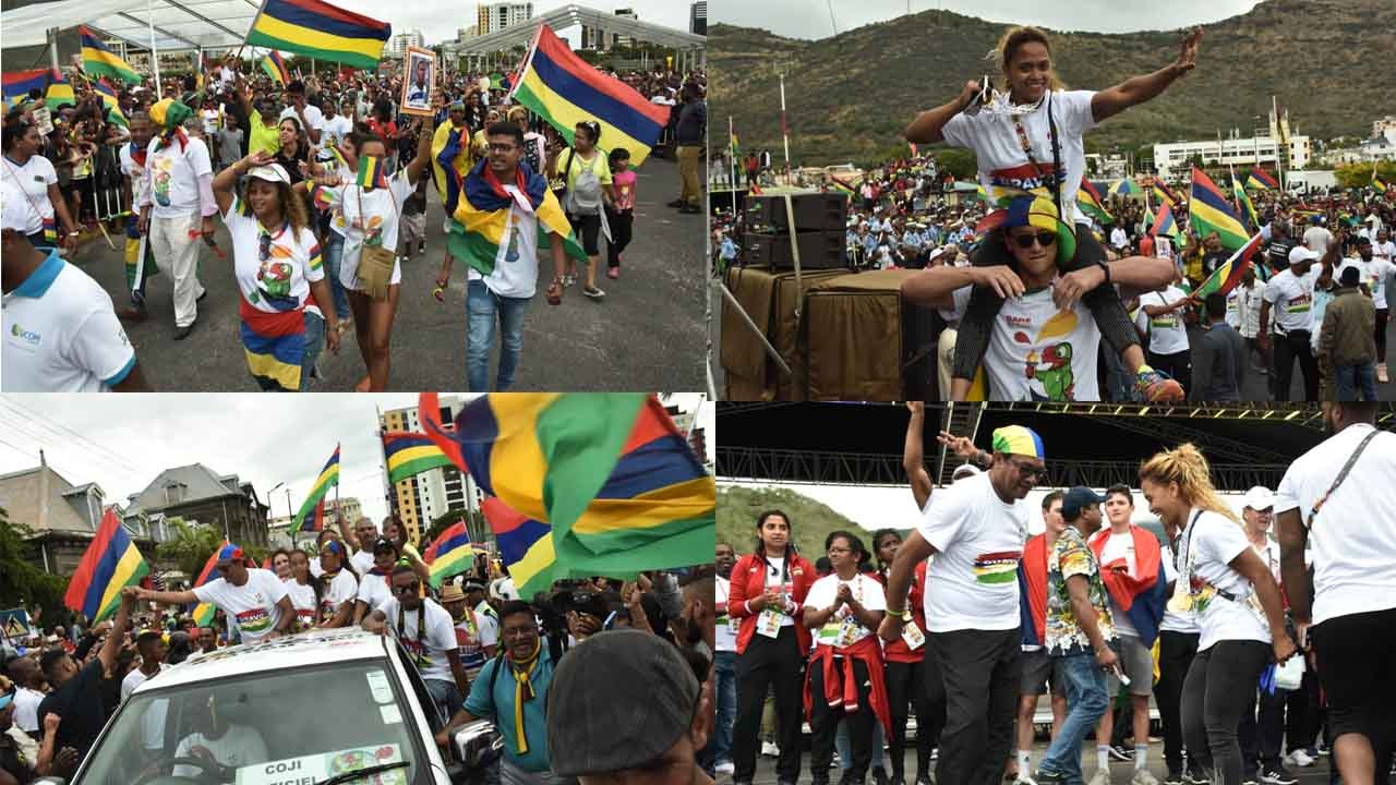 Ils sont nombreux à avoir fait le déplacement au Champ-de-Mars pour célébrer la belle victoire de Maurice aux Jeux des Iles de l’Océan Indien ce lundi 29 juillet.