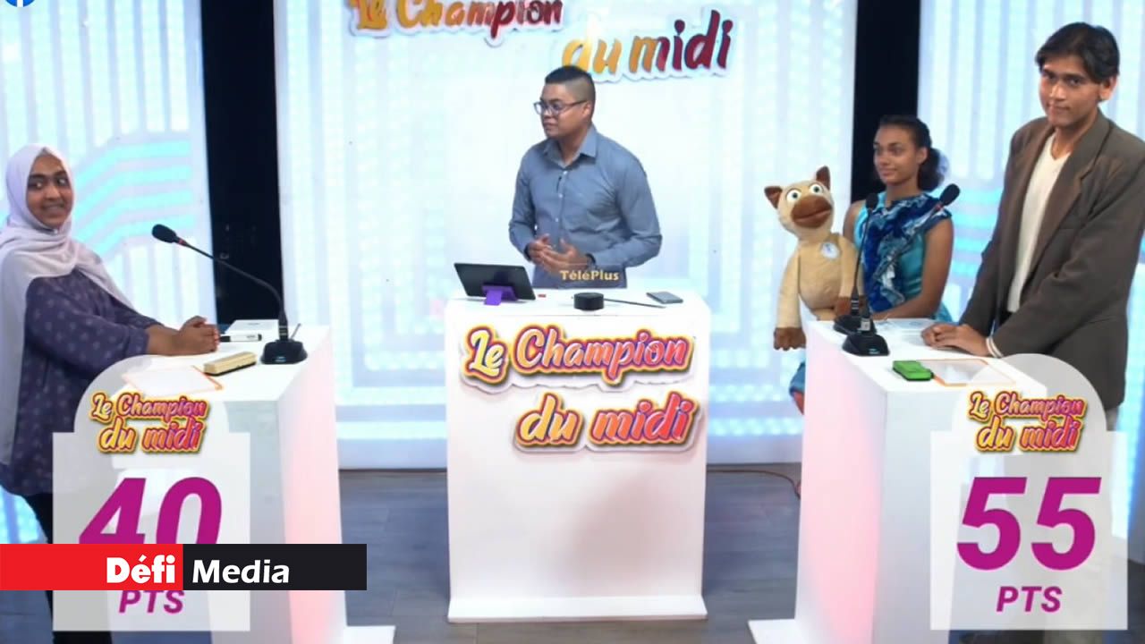 Le coup d’envoi de la première édition de « Le Champion du Midi Spécial Étudiants » a été donné hier, lundi 25 juillet. L’émission a accueilli Naïlah Zaynab Elahee et Ruddy Bhujun pour cette première journée. Ce dernier est le premier à se qualifier pour les quarts de finale. Il a empoché 55 points. Âgé de 17 ans, il est en Grade 11 au Sookdeo Bissoondoyal State College. Rendez-vous est pris à 12 h 30 sur les ondes de Radio Plus, la page Facebook Defimedia.info et de Radio Plus, sur la chaîne YouTube de TéléPlus ainsi que le site www.defimedia.info.