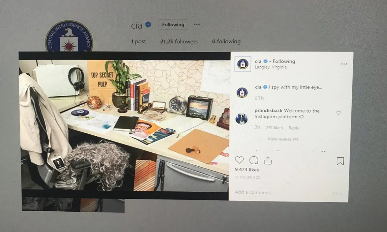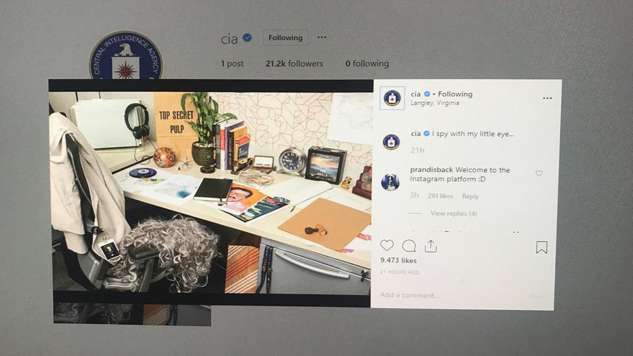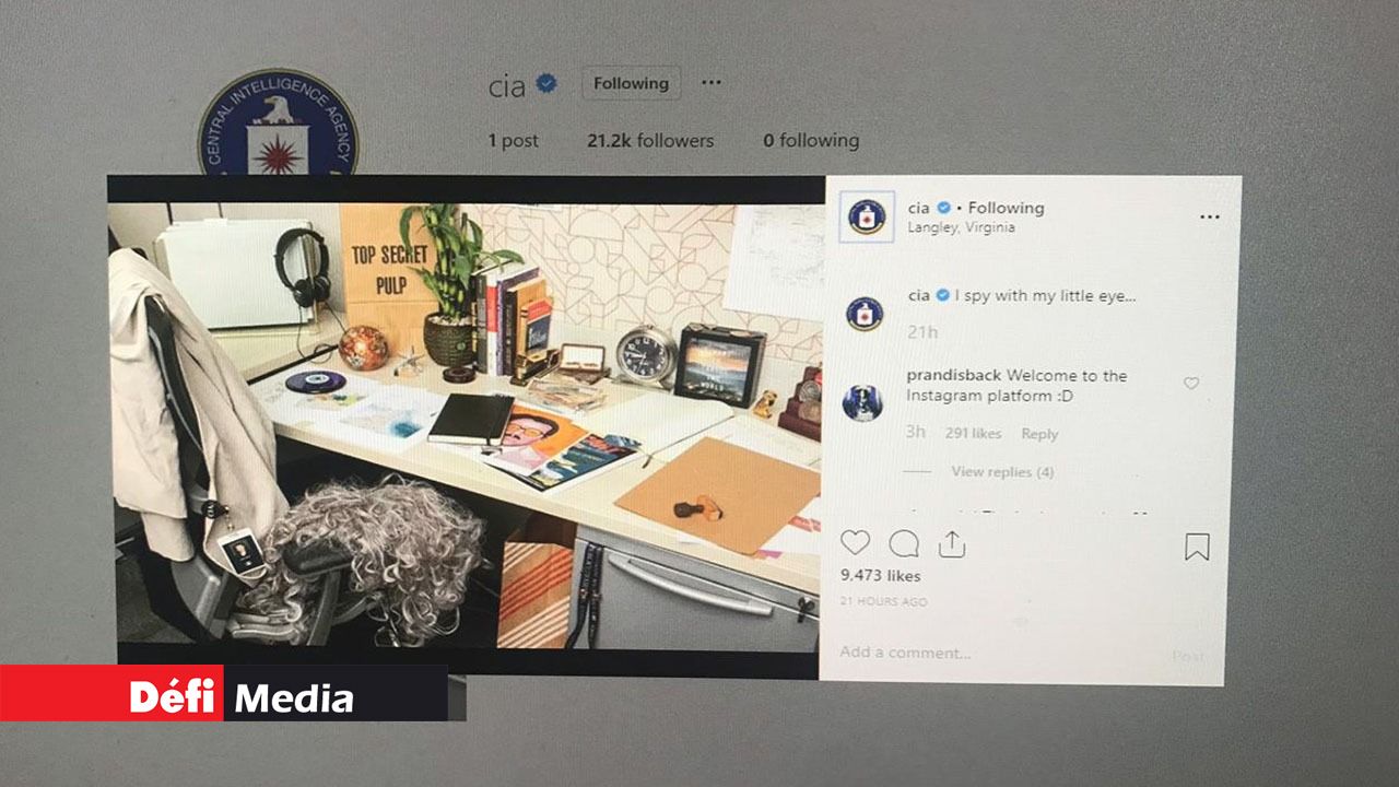 Après Facebook et Twitter, la « Central Intelligence Agency » vient de créer son propre compte Instagram ce jeudi et y a meme publié une première photo. L’agence américaine du renseignement n’a pas manqué d’humour en dévoilant une photo supposée représenter le lieu de travail d’un de ses agents secrets. En avant plan, placés sur une chaise devant le bureau se trouvait une perruque ainsi qu'un badge. On y voit aussi sur la photo quelques livres, un agenda ainsi que des dossiers « Top Secret ».