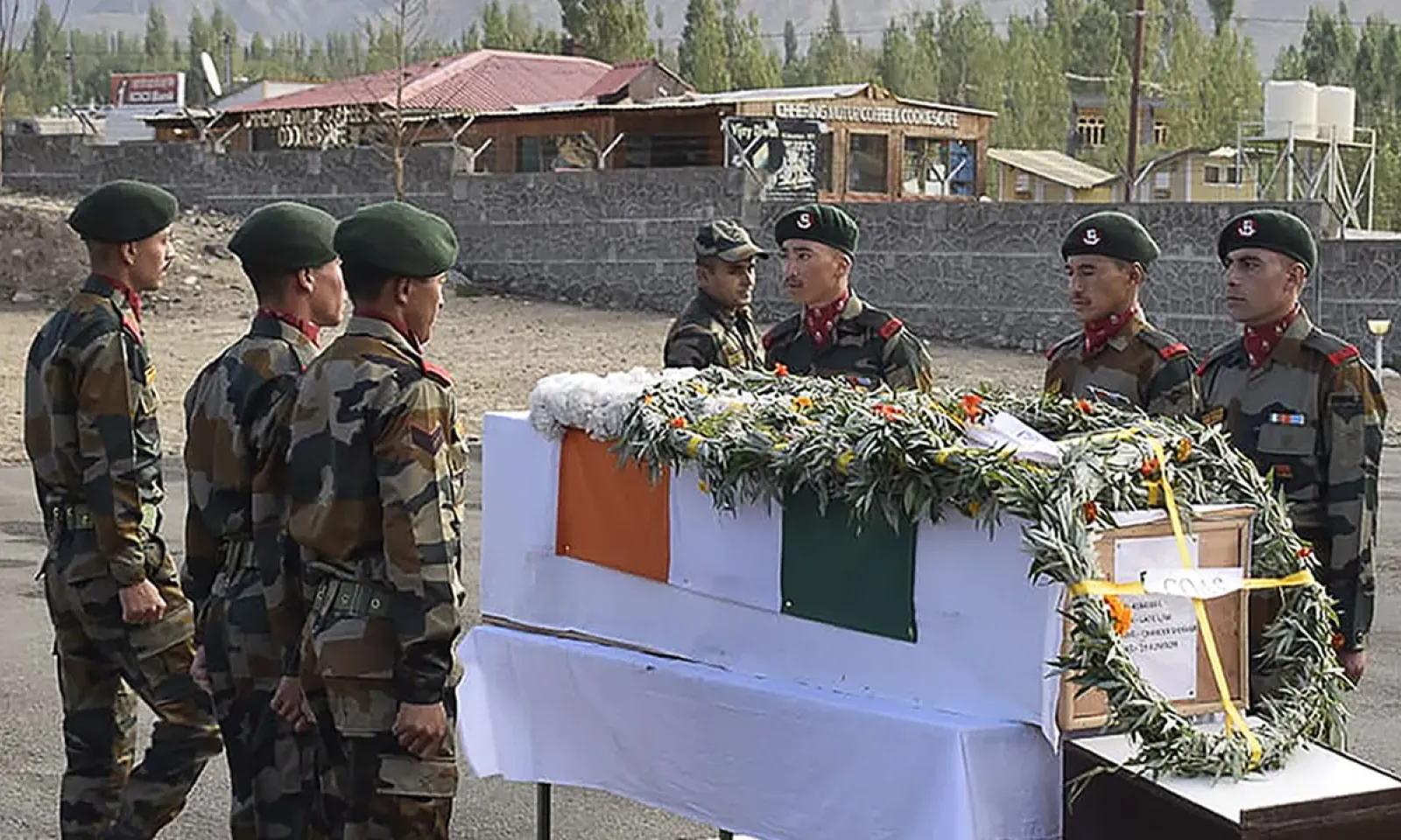 Une unité de l'armée indienne a publié mercredi matin sur Twitter des photos du cercueil de Chander Shekhar, enveloppé dans un drapeau indien.