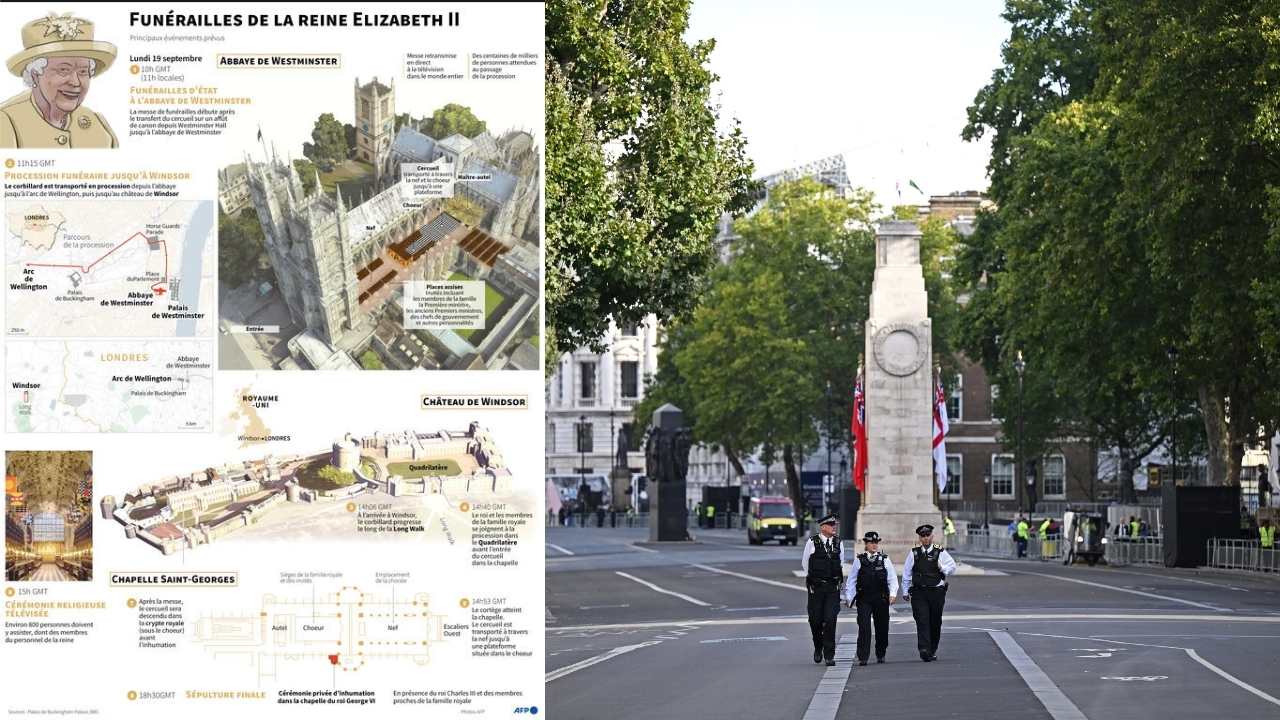 Les funérailles d'Etat de la reine Elizabeth II, les premières au Royaume-Uni depuis celles de Winston Churchill en 1965, suivent un déroulement méticuleusement préparé. En voici le programme, en heures locales.