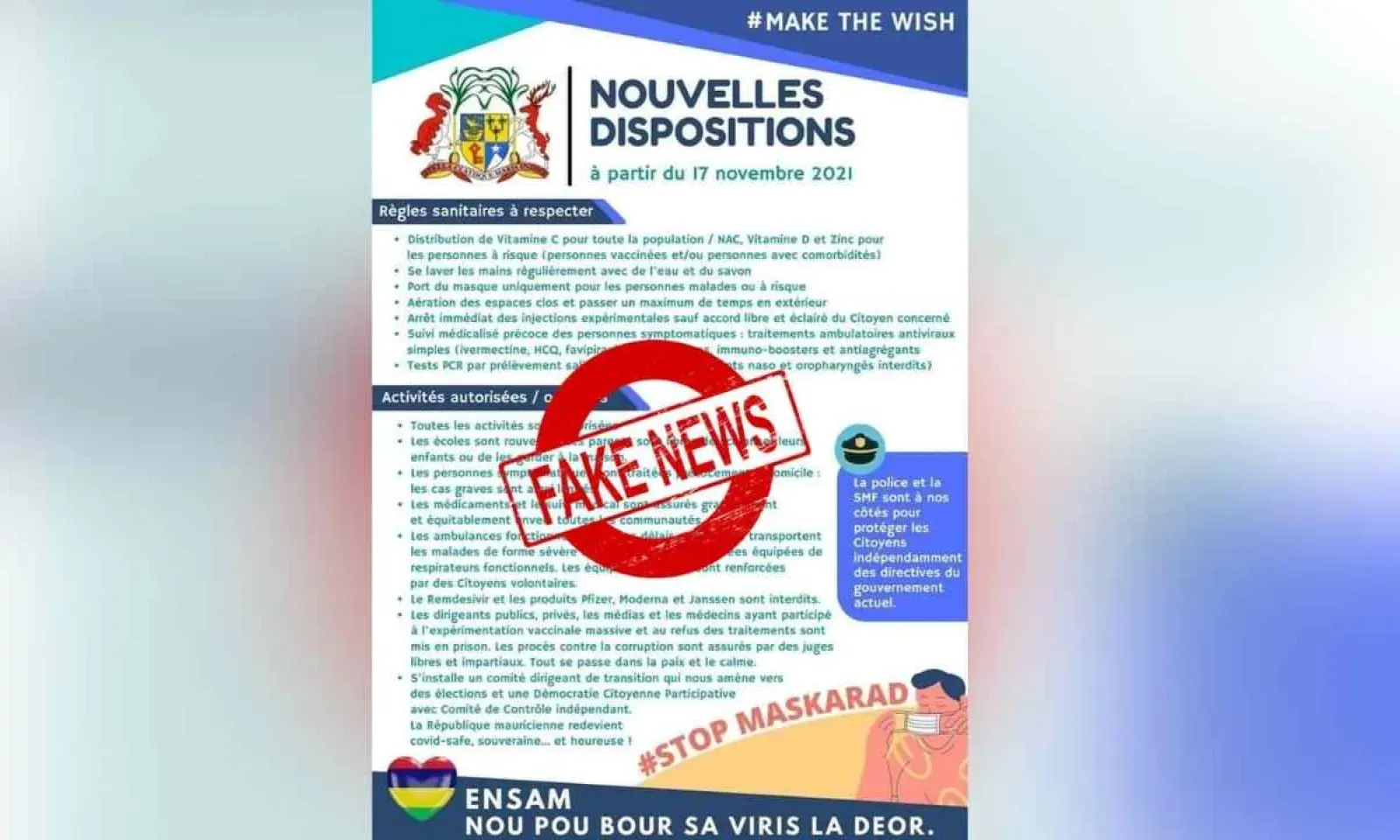 Un faux communiqué portant le sceau de la République de Maurice et des informations ayant trait à un nouveau protocole sanitaire circule sur les réseaux sociaux.