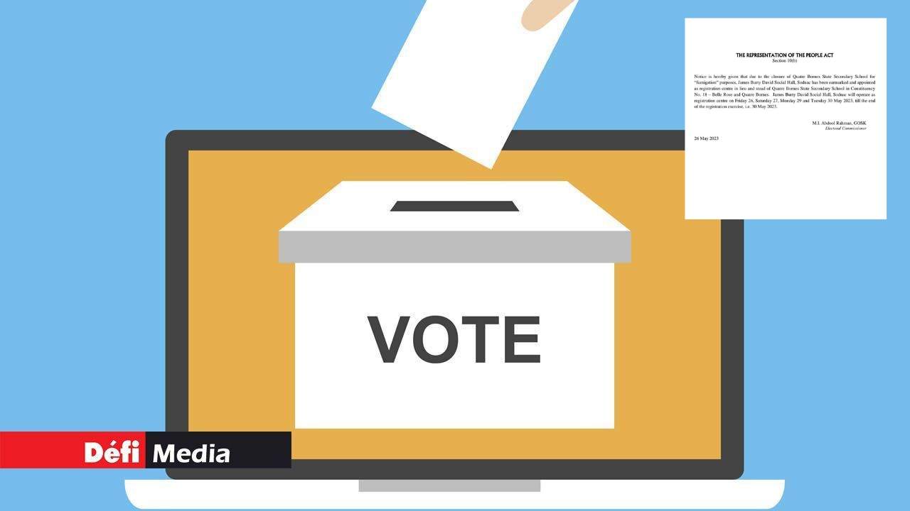 Quatre Bornes State Secondary School ayant été temporairement fermée pour cause de fumigation, c’est le James Burty David Social Hall qui a été choisi comme centre d’enregistrement des électeurs dans la Circonscription No.18 (Belle-Rose/Quatre-Bornes) selon un communiqué émis en ce jour par le bureau du Commissaire électoral. L’exercice, qui a débuté ce vendredi 26 mai, se poursuivra jusqu’au 30 mai.