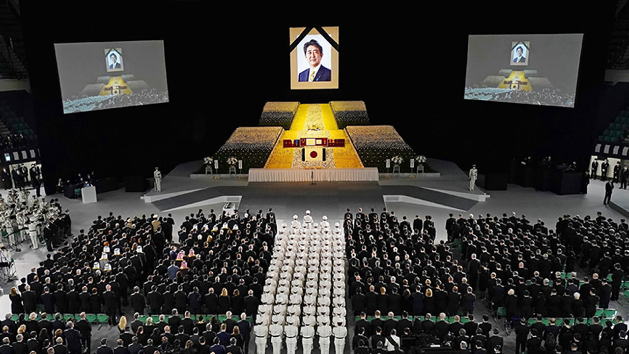 Après l'hymne national et une minute de silence, plusieurs éloges funèbres ont été prononcés, notamment par M. Kishida et Yoshihide Suga, ancien bras droit d'Abe qui lui avait succédé comme Premier ministre (2020-2021).