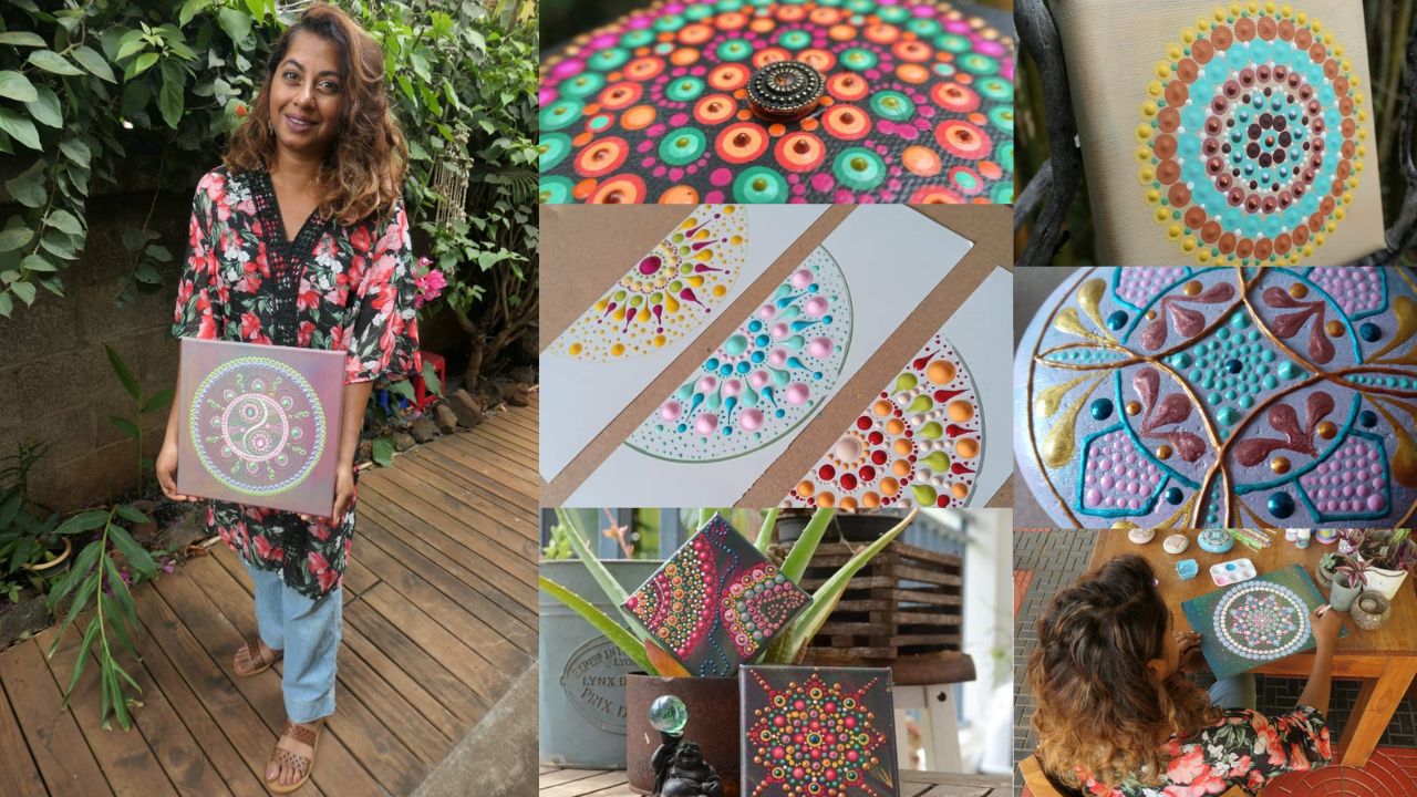 Une danse de points et de couleurs ; chaque point étant une expression, chaque couleur une émotion. C’est ainsi qu’Ashnee Naggoojee-Dousteyssier parle de l’art du Dotted Mandala. Tout a commencé à partir d’une vidéo qu’elle a vue sur YouTube, raconte l’artiste et assistante photographe de 37 ans. « Cet art m’a interpellée et j’ai commencé avec les outils à ma disposition à la maison, notamment de la peinture acrylique et des crayons. »