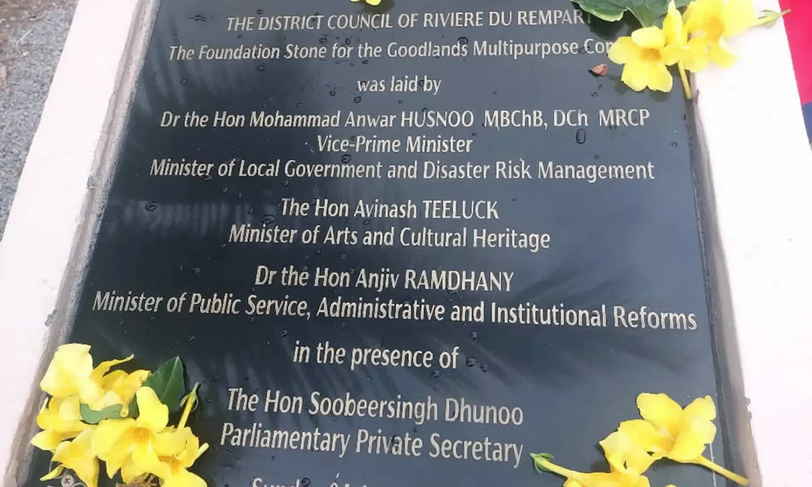 Prembhoodas Ellayah est définitivement hors-jeu au Conseil de district de Rivière-du-Rempart. Il a d’ailleurs été évincé à la cérémonie de pose de la première pierre du Goodlands Multipurpose Complex tenue dimanche. Selon une source très fiable, la fonction a été honorée par la présence du vice-Premier ministre et ministre de Collectivités locales, Anwar Husnoo, des ministres Avinash Teeluck et Anjiv Ramdhany, ainsi que du PPS Kenny Dhunoo. Prembhoodas Ellayah, qui a, pour rappel, occupé le fauteuil de président dudit Conseil jusqu’à fin juin, a été éjecté de son poste à la suite d’une motion de blâme. Une élection doit avoir lieu afin de trouver son remplaçant.