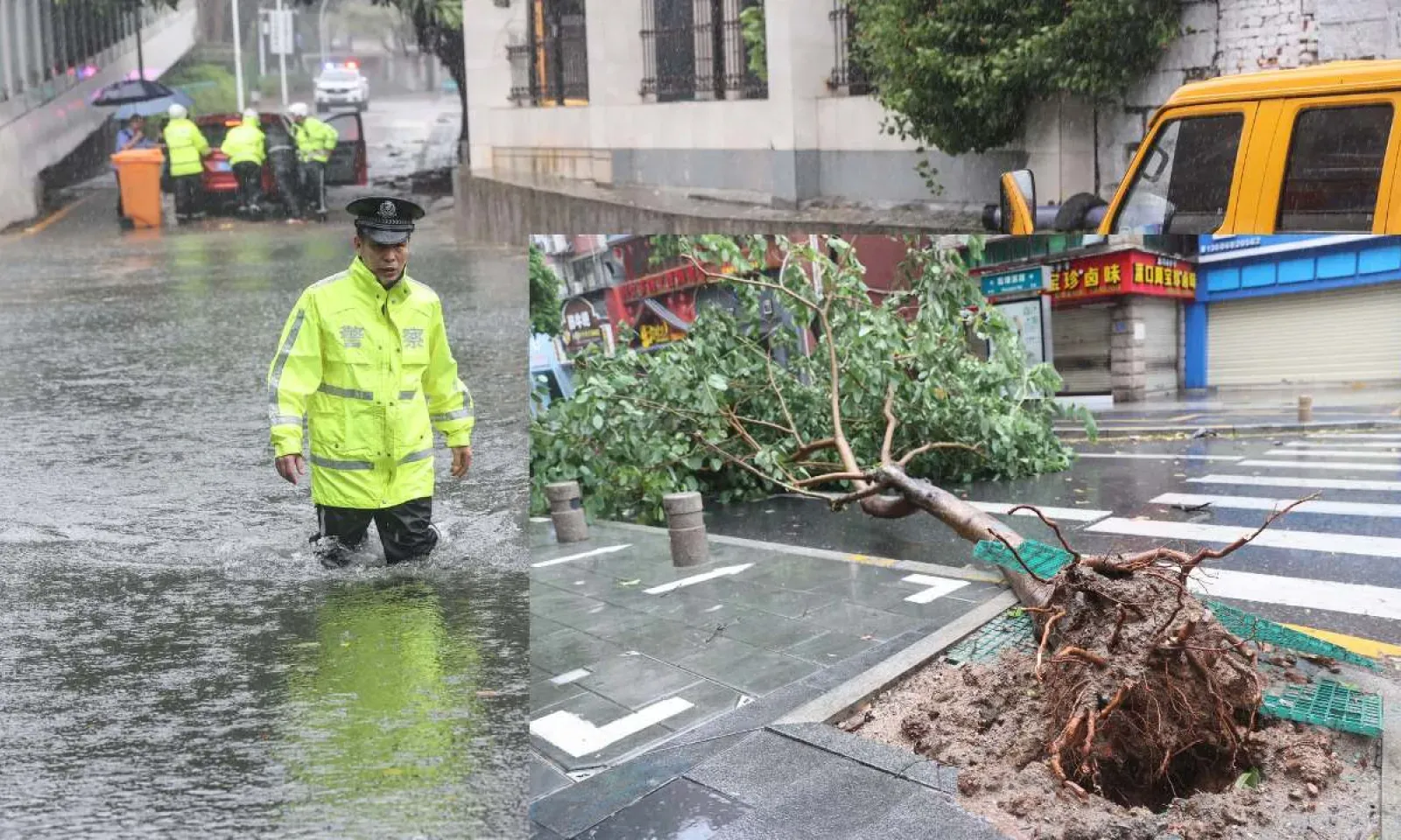 La chaîne CCTV a montré l'un de ses journalistes sur place entouré de rues inondées et d'arbres jonchant le sol.