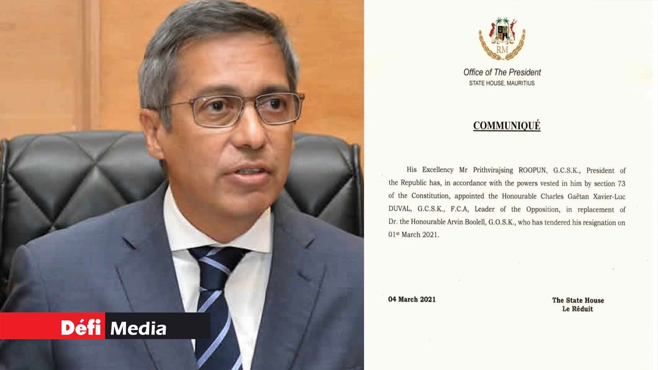Le Président de la République, Pradeep Roopun, a nommé le leader du PMSD comme leader de l’opposition.