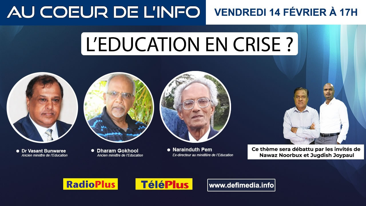 L’émission « Au Cœur de l’Info » vous propose, ce vendredi 14 février, un état des lieux de notre système d’éducation. Un sujet de brûlante actualité surtout depuis la proclamation des résultats du School Certificate où 70 % des candidats n’ont pu obtenir les 5 «credits» requis pour accéder en Grade 12.