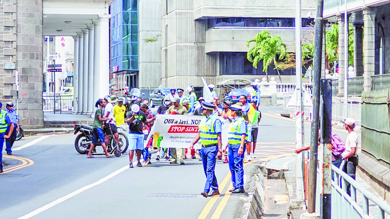 Le Kolektif 420 a organisé, samedi, une marche pacifique dans les rues de Port-Louis, réunissant une petite dizaine de participants. Le cortège est parti du centre Marie Reine de la Paix pour rejoindre le Jardin de la Compagnie, où les revendications ont été réaffirmées.