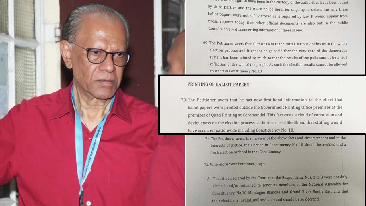 Le leader du Parti Travailliste, candidat battu dans la circonscription no 10 (Montagne-Blanche/GRSE) aux législatives du 7 novembre, a déposé ce jeudi une pétition électorale en Cour suprême.