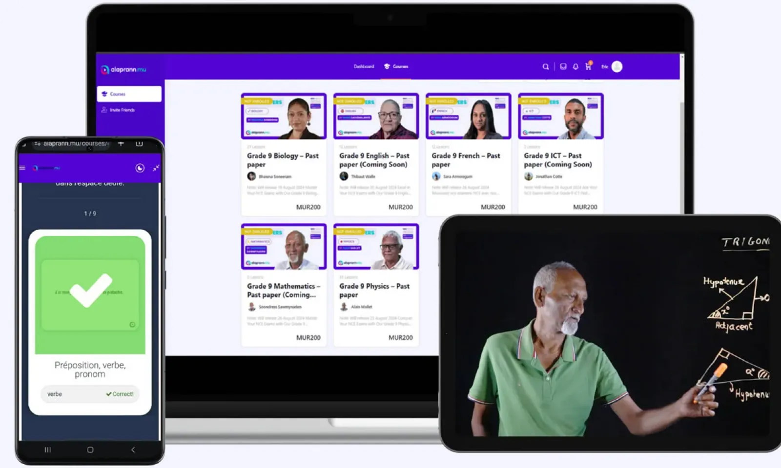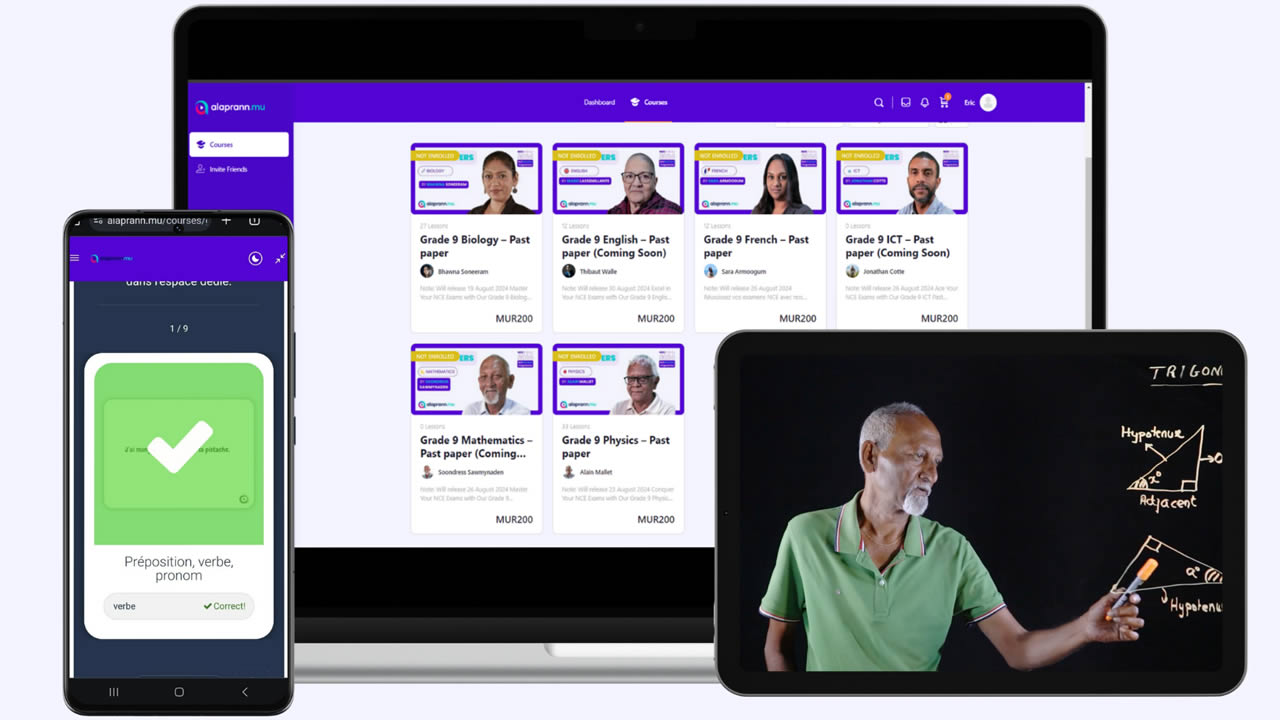 En plus du contenu éducatif, le programme de révision inclut un parcours d'apprentissage personnalisé, conçu pour guider les élèves pas à pas via les concepts essentiels à maîtriser avant les examens. Ce guide, élaboré par une équipe académique expérimentée, aide les élèves à gérer leur stress et leur charge de travail, en particulier ceux qui ne savent pas par où commencer leurs révisions. À travers cette initiative, alaprann.mu espère non seulement améliorer le taux de réussite aux examens du NCE, mais aussi contribuer à un avenir où chaque élève, quel que soit son milieu, ait une chance égale de réussir.