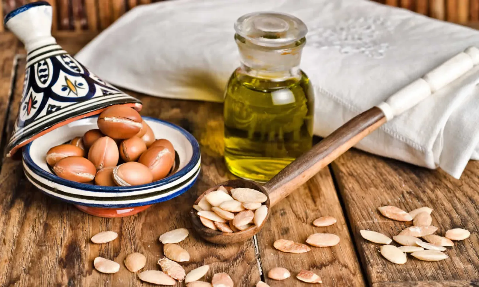 Selon la nutritionniste, Teenusha Soobrah, l'huile d'argan vierge, extraite des amandes d'argan par pressage à froid, est connue pour ses vertus cosmétiques, pharmaceutiques et nutritionnelles. « Cette huile est riche en composés mineurs tels que des composés phénoliques (3,3 mg/Kg), des stérols végétaux (295 mg/100 g) et des tocophérols (637 mg/Kg).