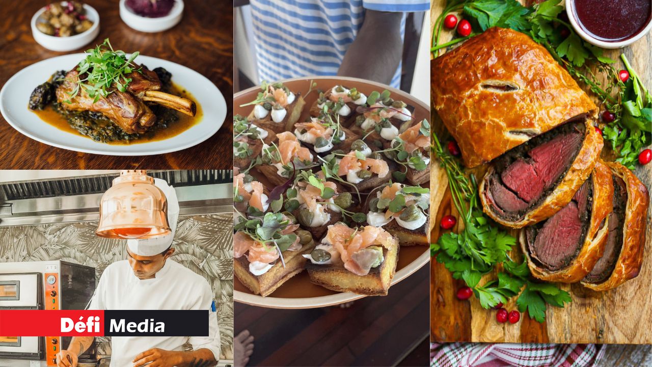 Le plat principal sera composé d’un filet de bœuf Wellington, avec une purée de fruit à pain, un tian de légumes à la provençale avec une sauce au vin rouge. Au dessert : un tiramisu au café et le sorbet de combava. Le prix de ce menu est à Rs 3 900 par personne.