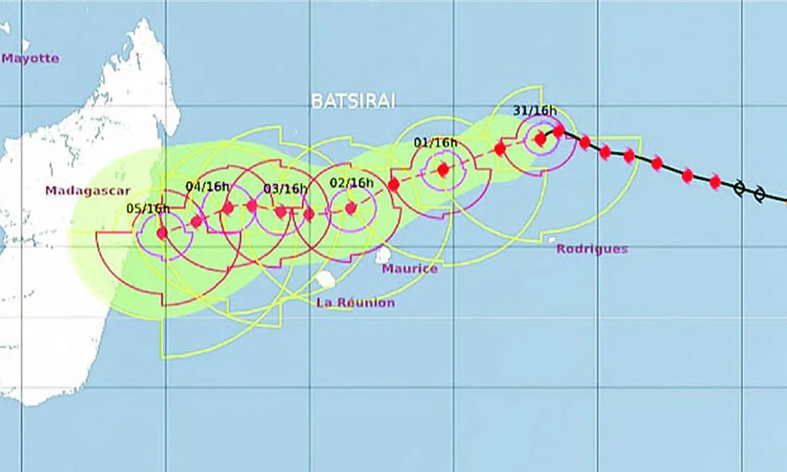 « Batsirai a pris naissance près de Diego Garcia. Ceux qui s’intéressent à la cyclogénèse ne s’attendaient pas à voir ce système acquérir une telle intensité aussi vite. Cela s’explique par le fait que Batsirai a obtenu le renfort de deux dépressions tropicales sur son trajet », indiquet-il.