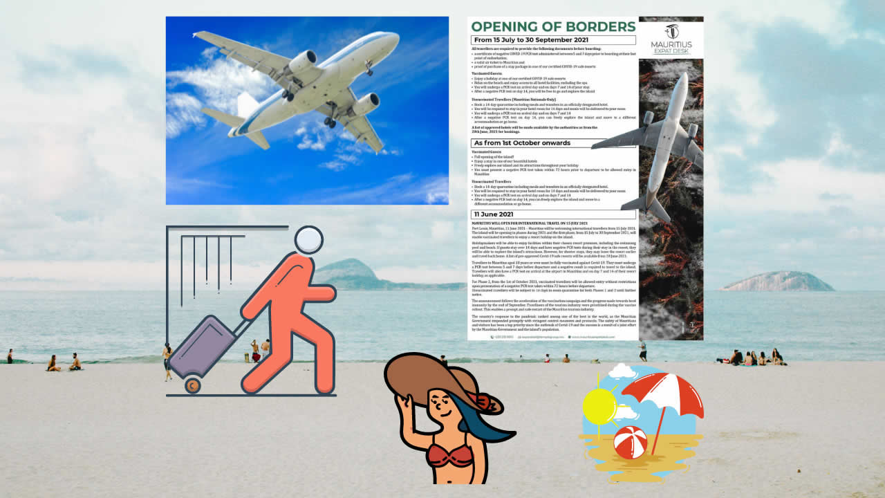 À partir du 15 juillet 2021, les frontières seront ouvertes pour les voyages internationaux. Des ressortissants étrangers et des Mauriciens seront accueillis. La réouverture se fera néanmoins par phases. Dans un document de l’Expat Desk, l’ouverture des frontières est décortiquée étape par étape.