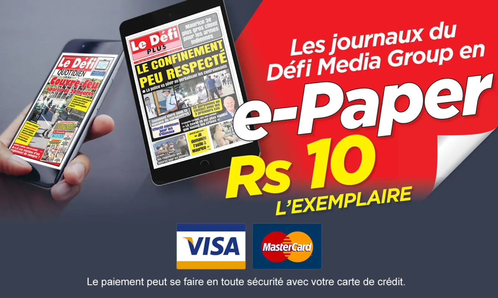 Ces e-Papers sont disponibles depuis le mardi 24 mars 2020 à Rs 10 seulement l’exemplaire et ce, indépendamment de la publication : Le Défi Quotidien, Le Défi Plus et Le Dimanche-L’Hebdo.