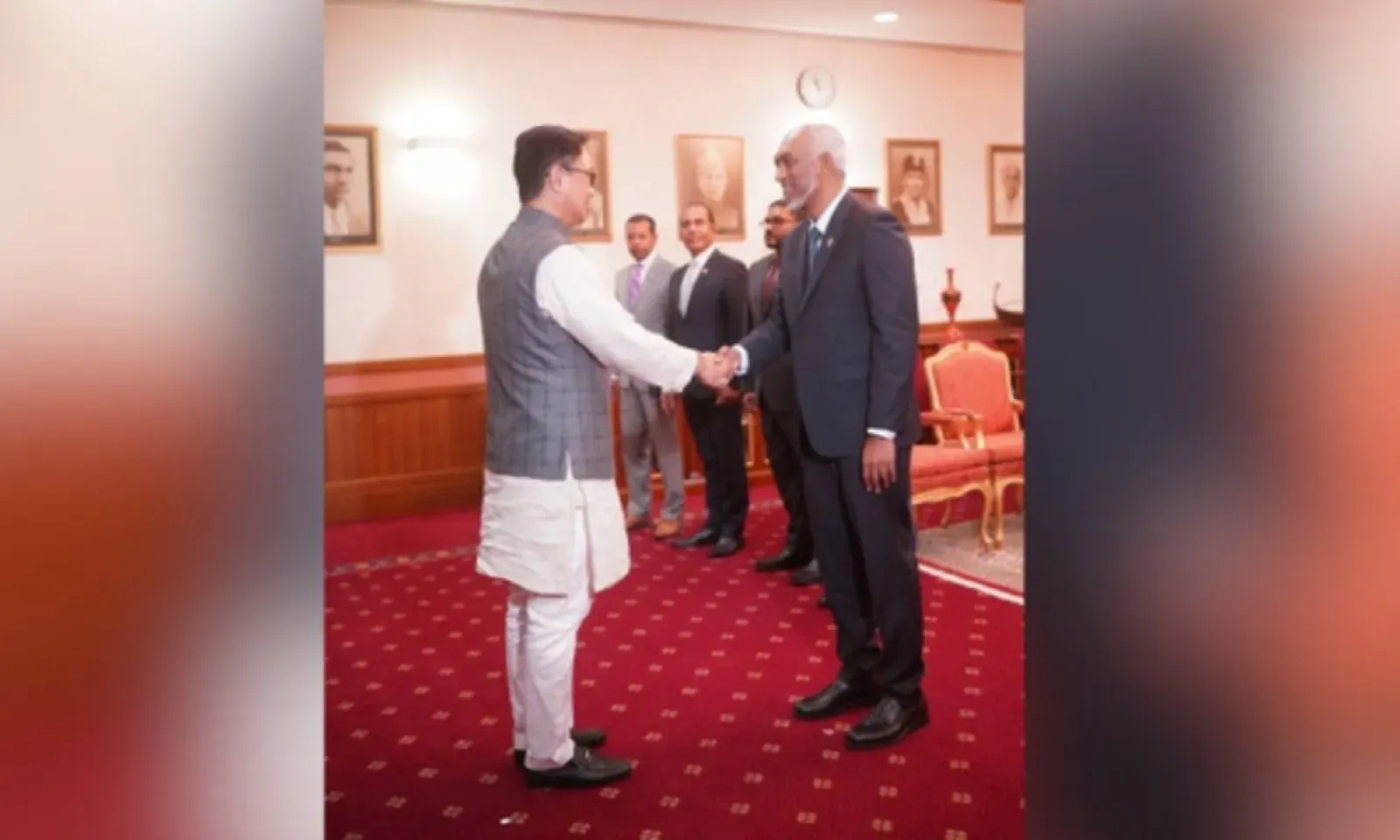 "Le président a fait formellement cette demande lors d'une rencontre avec le ministre indien des Sciences de la Terre Kiren Rijiju au bureau" présidentiel, ont indiqué les services de M. Muizzu.