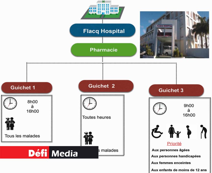 Le deuxième hôpital auquel nous rendons visite est celui de Flacq. Notre premier constat, c’est que la cour est bien grande et spacieuse, mais les bâtiments sont vétustes. Ici, la remise des cartes aux patients et la pharmacie se trouvent dans la même pièce. Une pièce à l’ancienne, avec une employée assise derrière une table rustique placée au milieu. La pharmacie a trois guichets. Ils restent ouverts en semaine comme en week-end. Un « relooking » serait le bienvenu.