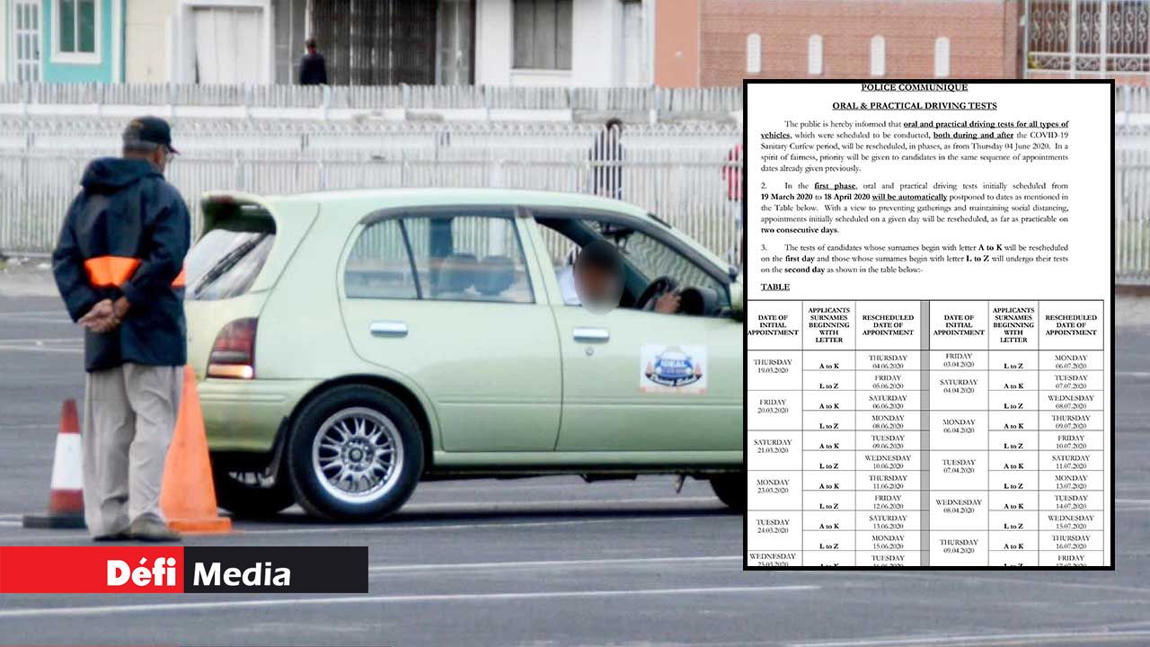 Des informations concernant les dates exactes des examens de conduite reportés sont également disponibles sur la page Facebook de la police et sur le site Web de la police http://police.govmu.org.