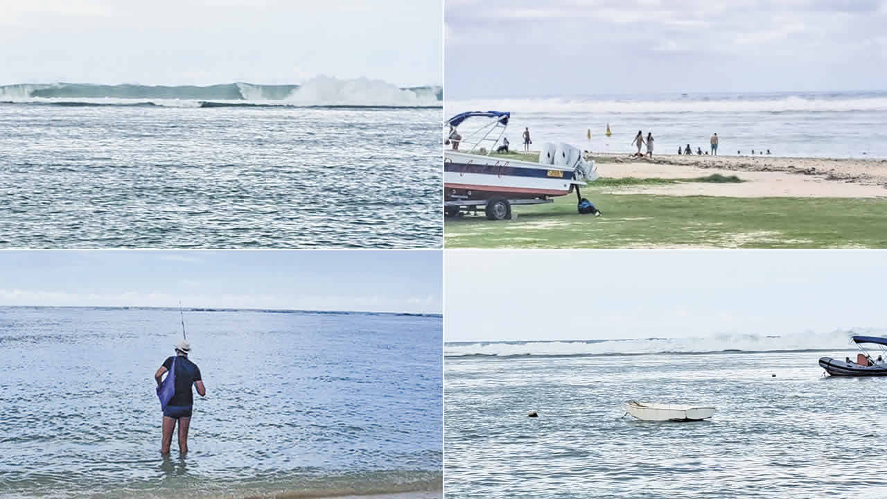 Les premiers promeneurs de la journée arpentent le bord de mer. Ils contemplent de loin les grosses vagues qui se donnent en spectacle. Des téméraires sont, eux, déjà dans l’eau. Tandis que des pêcheurs tentent d’attraper des poissons. Entre-temps, des touristes passent en file indienne.