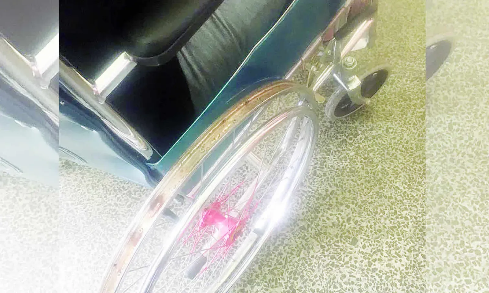 « On m’a donné un fauteuil roulant sans pour transporter mon ami à l’intérieur pour qu’il puisse être examiné et recevoir des soins. Rien de plus normal. Sauf qu’il manquait une roue pneumatique à ce fauteuil. Je vous laisse imaginer le calvaire que nous avons vécu. L’épouse de mon ami est enceinte de huit mois. Elle arrivait à peine à pousser ce fauteuil. Faute de mieux, j’ai dû moi-même le pousser jusqu’au département des urgences », raconte Jean.