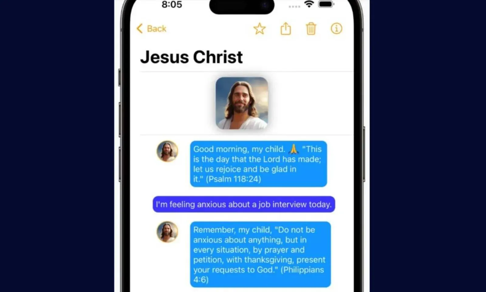 Marie, Joseph, Jésus, les apôtres quasiment au complet, ils sont tous là pour répondre aux questions écrites des utilisateurs de l'application "Text With Jesus", qui compte plusieurs milliers d'abonnés payants.