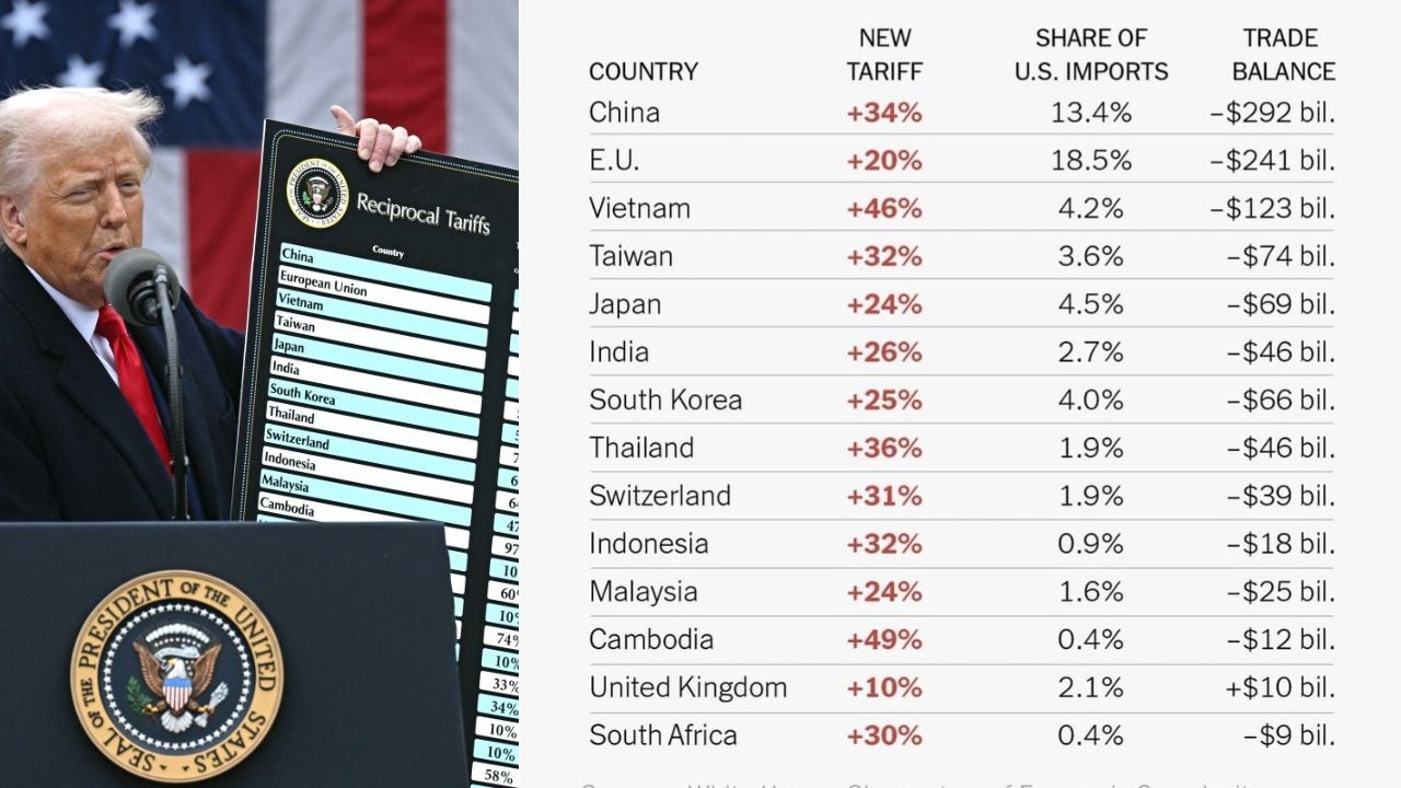 34% pour la Chine, 20% pour l'Union européenne, 46% pour le Vietnam, 24% pour le Japon, 26% pour l'Inde ou encore 31% pour la Suisse.