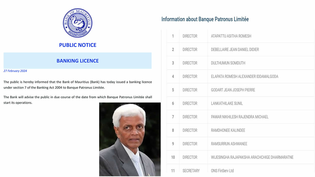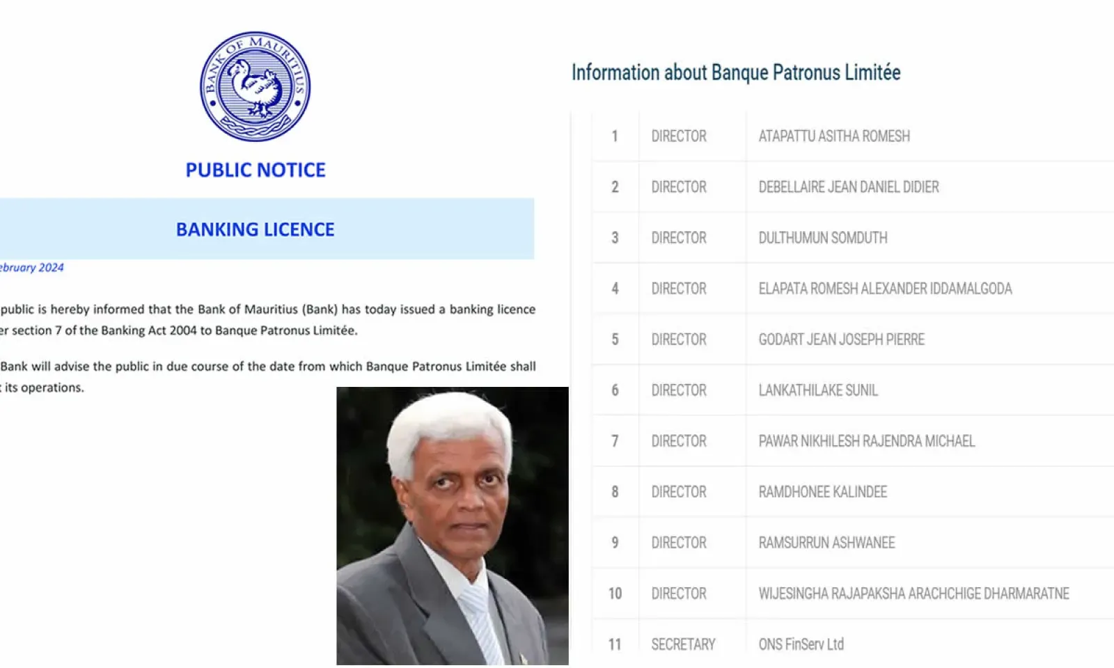 La Banque de Maurice a accordé une nouvelle licence à Banque Patronus Limitée, avec Somduth Dulthumun parmi ses directeurs. L’ex-président de la Sanatan Dharma Temples Federation a joué un rôle crucial en faisant la liaison entre Habib Bank Ltd et des investisseurs étrangers, facilitant ainsi le rachat de la banque. Le Board de Banque Patronus Ltée est composé de dix membres, dont cinq Mauriciens.