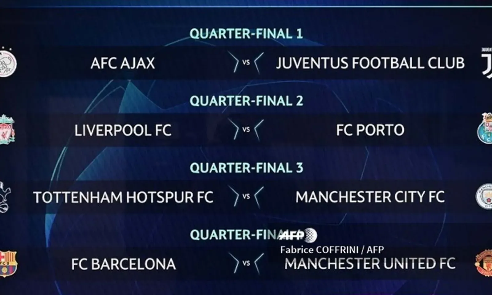 Un duel 100% anglais opposera Tottenham à Manchester City, alors que Liverpool hérite d'un tirage favorable avec Porto. Les quarts de finale ont lieu les 9-10 (aller) et 16-17 avril (retour).