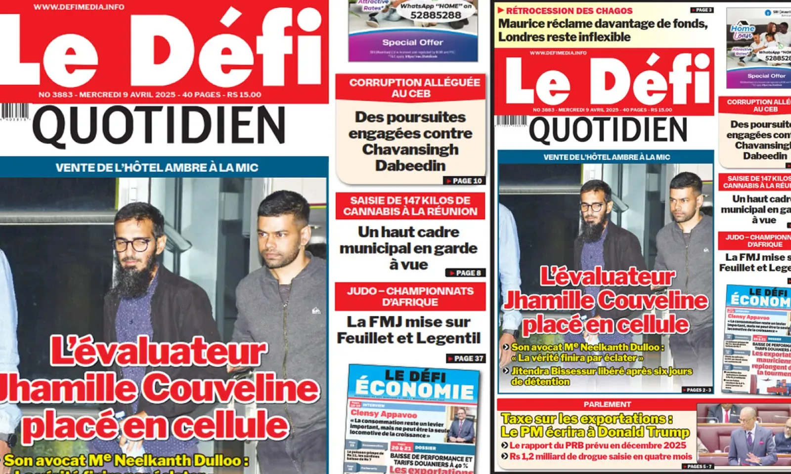 ? Voici la Une du Défi Quotidien. Le journal est en vente à Rs 15 l'exemplaire aux endroits habituels (supermarchés, boutiques, tabagies, superettes). Bonne lecture !