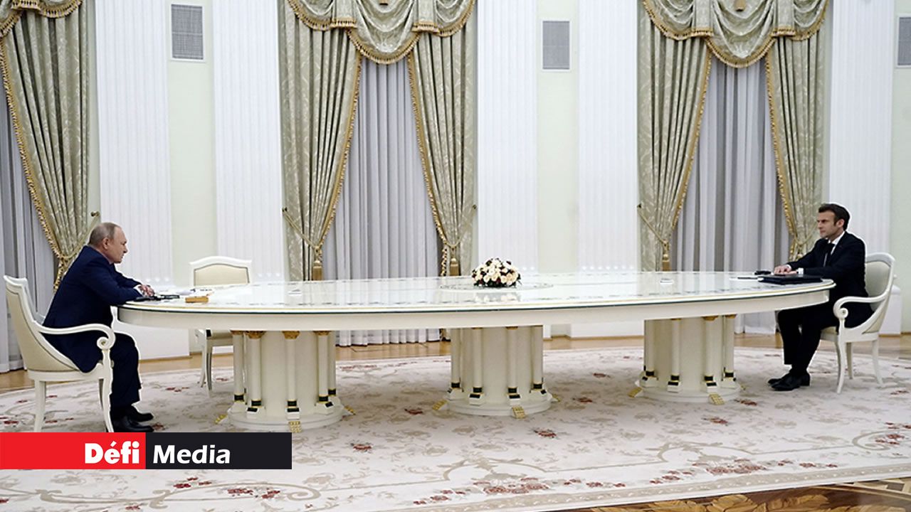 Le Kremlin a expliqué vendredi que la longue table séparant Vladimir Poutine d'Emmanuel Macron lors d'un entretien sur l'Ukraine visait à respecter une distance sanitaire après le refus du président français de se soumettre à un test Covid en Russie.