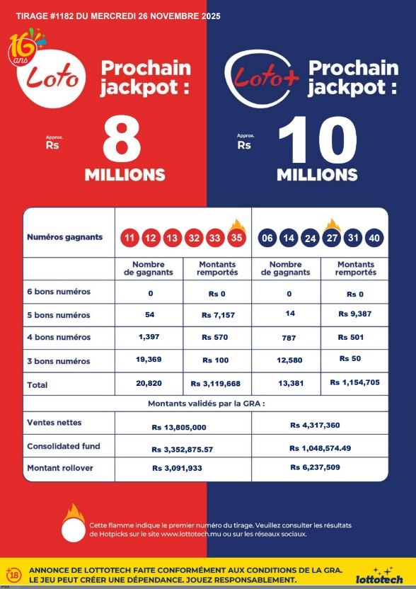 Le prochain jackpot du Loto passera à approximativement à Rs 8 millions et celui du Loto Plus à environ Rs 10 millions.