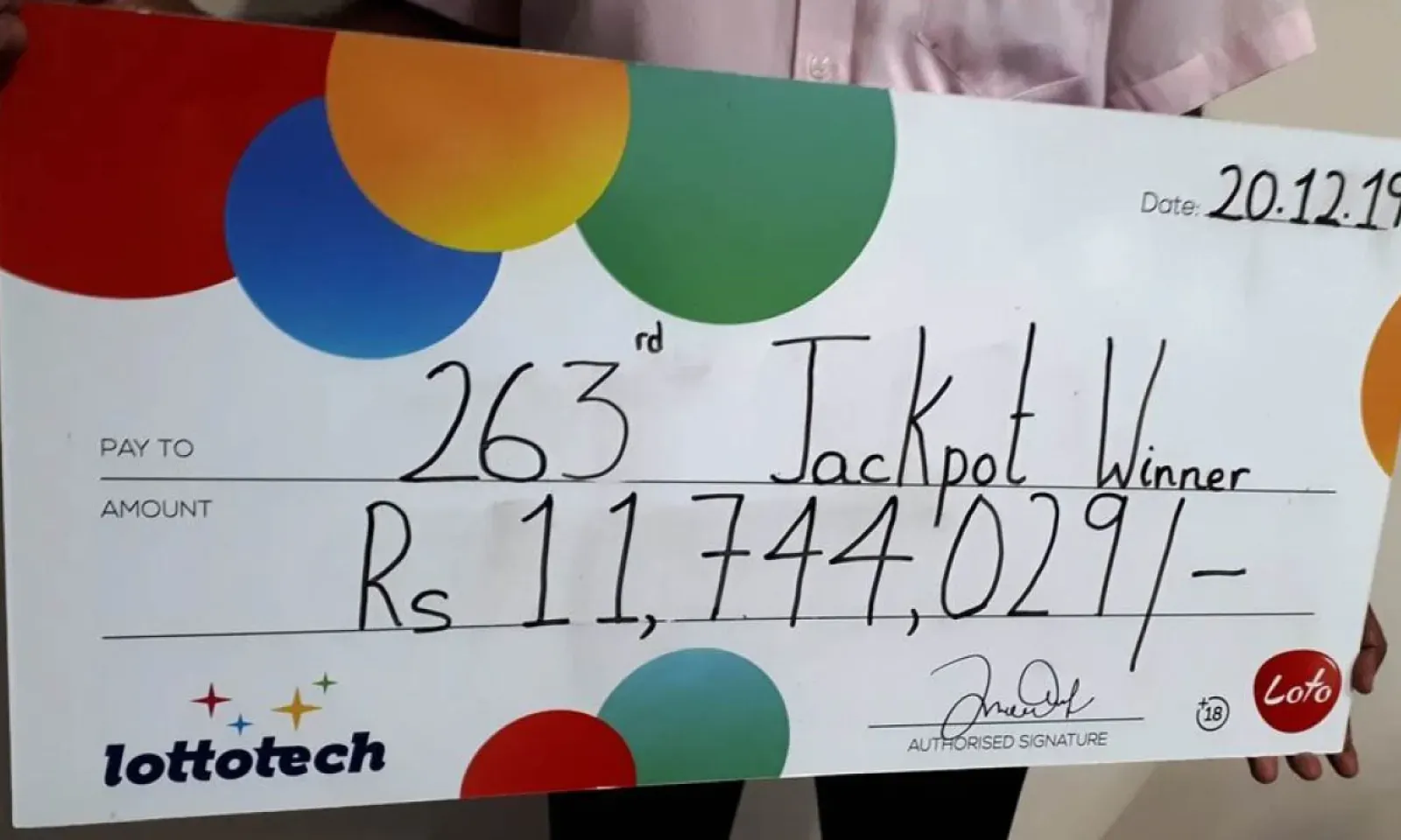 Un jackpot d'environ Rs 58,5 millions était en jeu pour le 596e tirage. Il y a eu cinq billets gagnants. Les deux autres détenteurs des billets gagnants s'étaient rendus au siège de Lottotech jeudi pour récupérer leurs chèques.