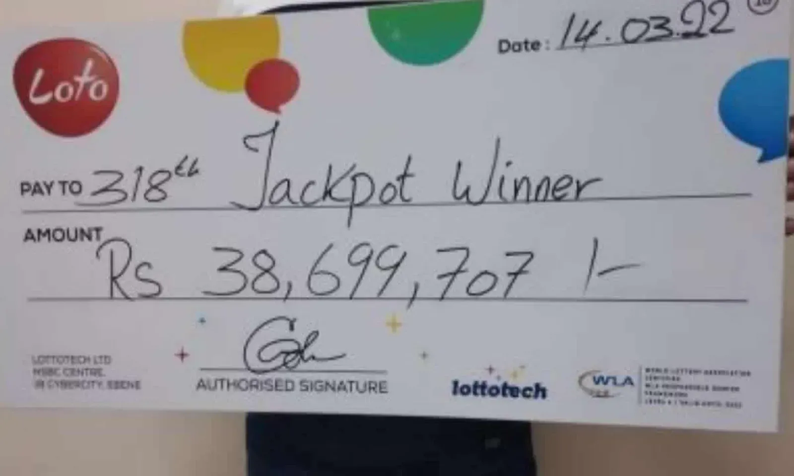 Le gagnant du jackpot de Rs 38,6 millions est connu. Il s’agit d’un Curepipien, travaillant dans la rénovation de maisons. Ce père de famille d’une quarantaine d’années s’est rendu au siège de Lottotech à Ebène lundi pour récupérer son chèque.