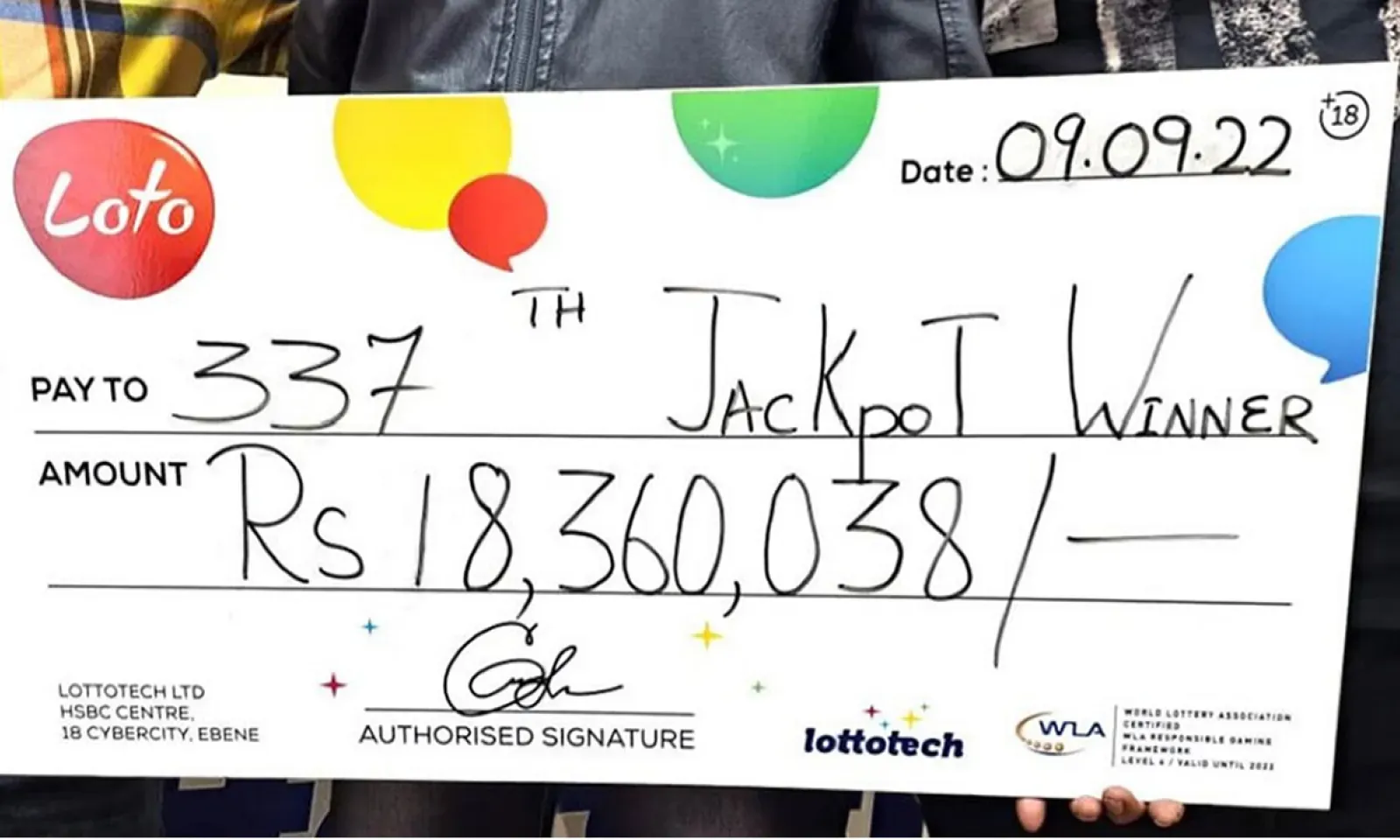 Le 337ᵉ gagnant du Loto est venu récupérer son chèque au siège de Lottotech à Ébène vendredi 9 septembre. Il s’agit d’un chauffeur de taxi à Port-Louis qui empoche Rs 18, 360,038, 00 après avoir coché les six bons numéros.