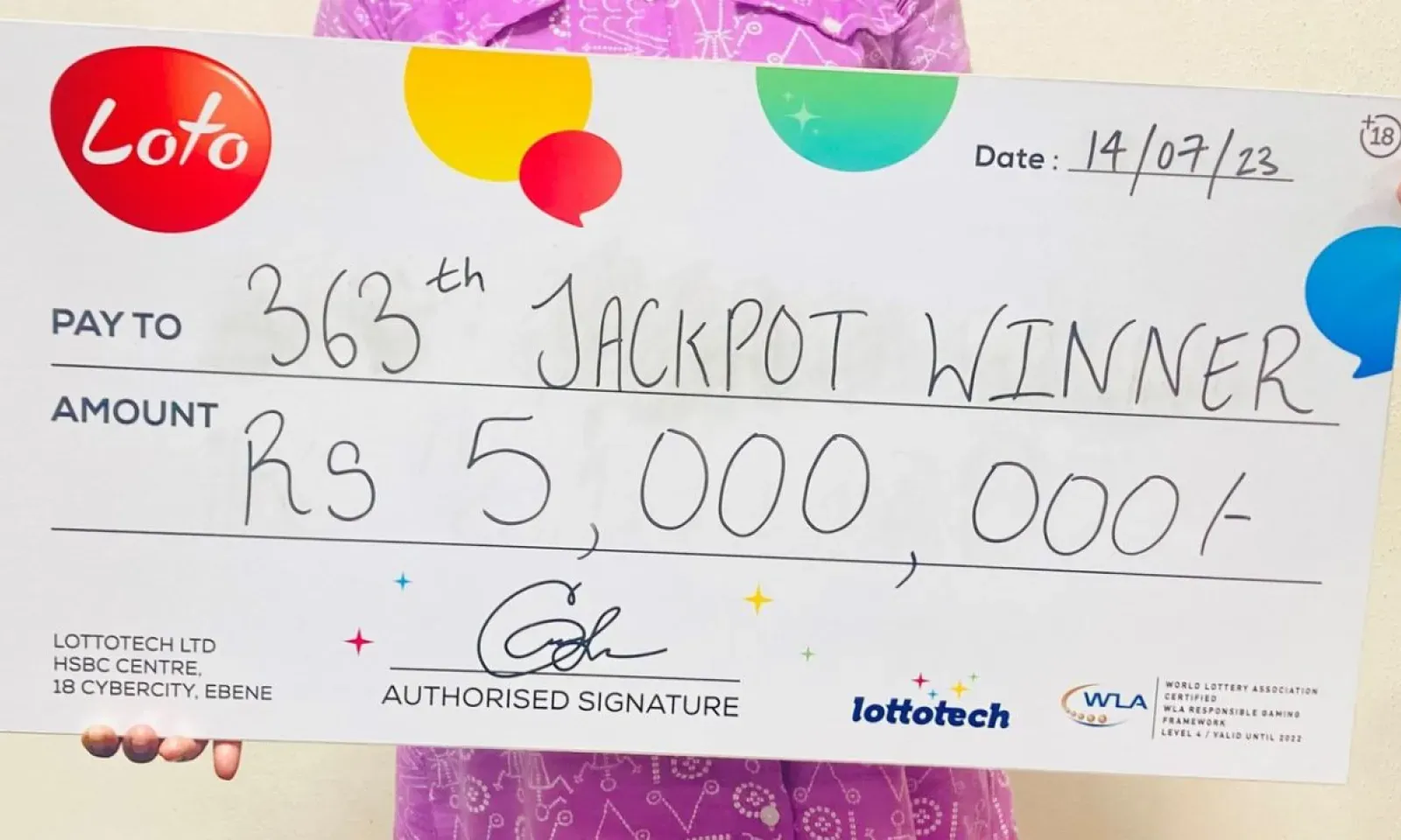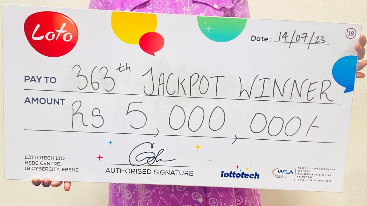 Elle pourra désormais concrétiser son rêve : s’acheter une maison. La 363e gagnante du 935e tirage du Loto est une femme au foyer. Elle a récupéré son chèque de Rs 5 millions au siège de Lottotech, le 18 juillet dernier. C’est ce qui ressort du communiqué émis par Lottotech ce vendredi.