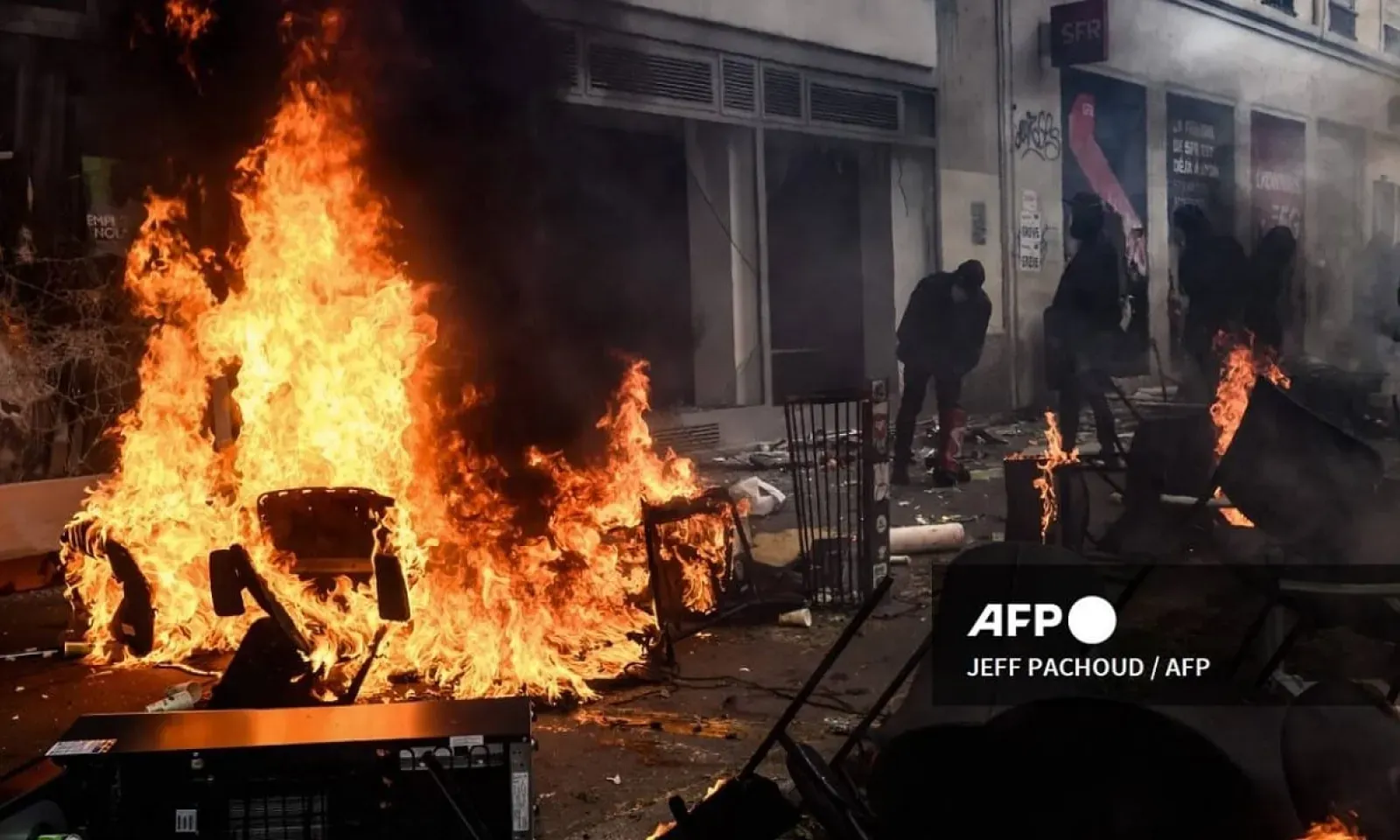 Au moins quatre voitures ont été incendiées sur le parcours, des abribus, des commerces, des banques, des assurances et des agences immobilières ont été vandalisés par des perturbateurs cagoulés et habillés de noir sur le parcours du défilé qui a duré plusieurs heures. Au moins deux supérettes ont subi des pillages, selon des images diffusées sur les réseaux sociaux.
