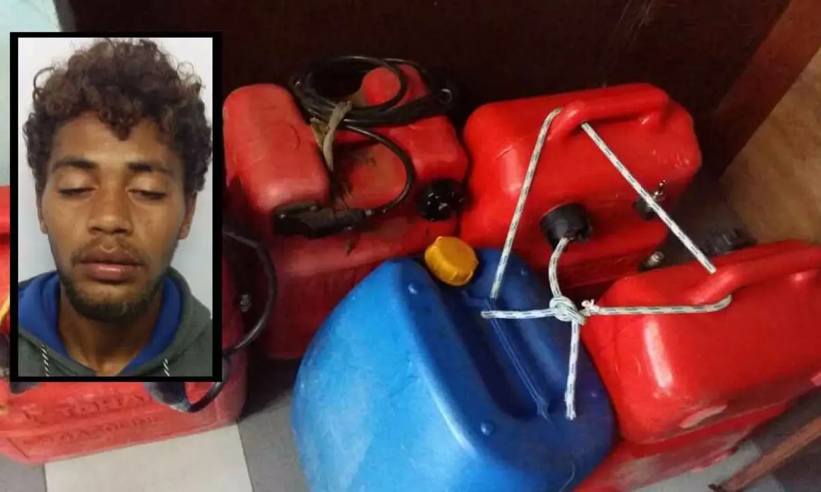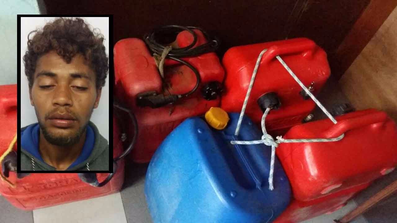 Lors de son arrestation, il avait en sa possession cinq bidons remplis d'essence. Il a admis les avoir volés à bord d'un catamaran.