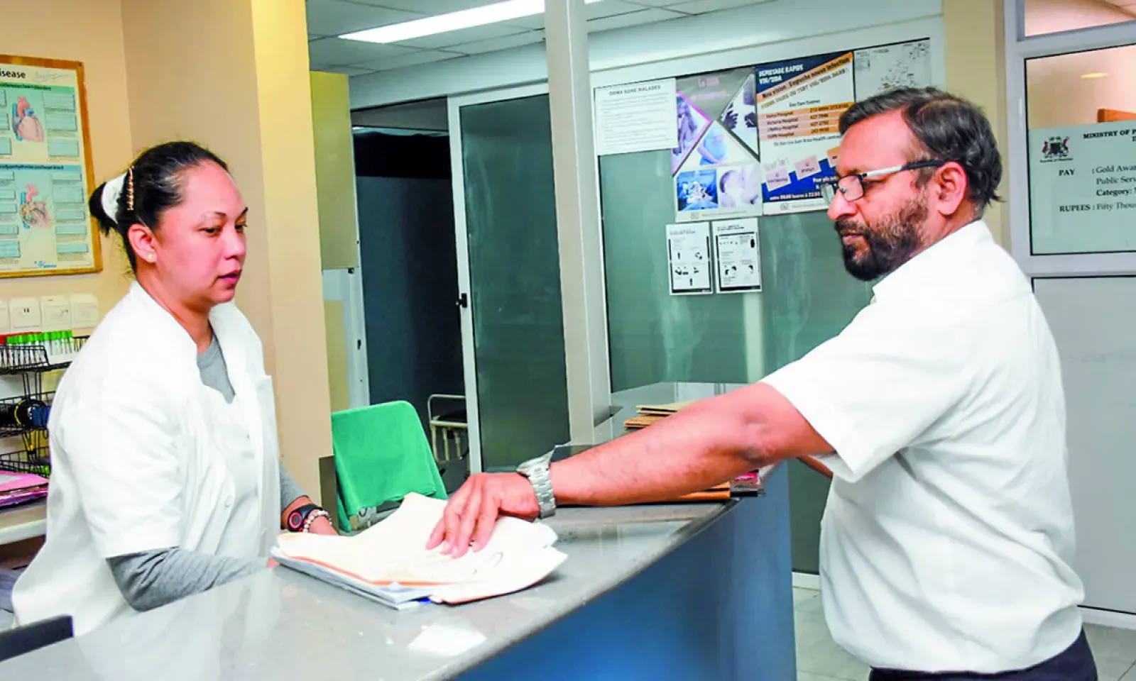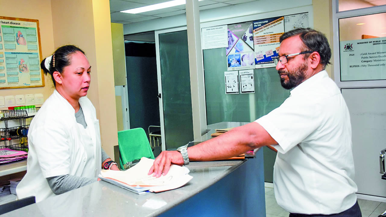 De son côté, Sidique Soutehnah compte plus de 33 ans de service. Entré comme Health Care Assistant, il a ensuite suivi une formation en soins infirmiers avant d’être affecté à divers départements : centres de santé, Surgical ICU, puis au SAMU pendant dix ans. Il a également travaillé comme Biomedical Technician avant d’intégrer la Cardiac Unit, notamment au Cath Lab, où se pratiquent les angiographies et la pose de pacemakers.