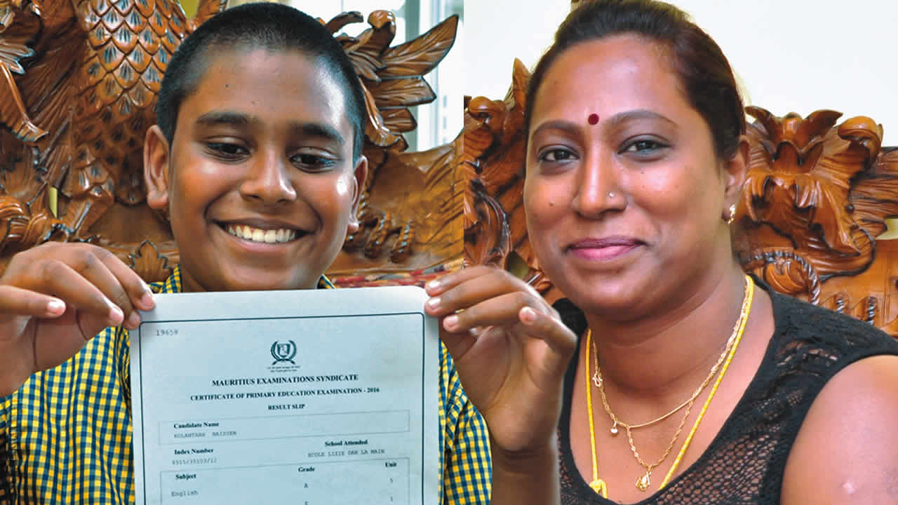 La maladie de sa maman et ses handicaps physiques ont influé sur sa scolarité. « En janvier, je me suis rendue à son école pour savoir où il en était dans sa préparation pour les examens du CPE. Son enseignante m’a alors révélé qu’il ne pouvait pas prendre part à ces examens, car il n’avait pas le niveau. Il n’avait même pas le niveau d’un élève de Std IV. C’était la douche froide, mais je me suis dit que rien n’était perdu. Nous avions une année pour réussir », confie Satiamah Kolanthan.