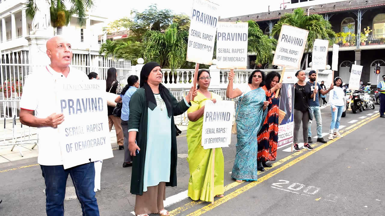 Les membres de Linion Moris ont manifesté devant l’hôtel du gouvernement dans l’après-midi du jeudi 18 juillet. Ils ont dénoncé la nomination du nouveau Speaker de l’Assemblée nationale, Adrien Duval. « Azordi Sir Gaëtan Duval gayn onte kan li trouv so garson ek so ti zanfan fer sa sort la. Mo espere elektora ble vinn zwenn Linion Moris », a fait ressortir Rama Valayden lors de son intervention. « Le Speaker sortant, Sooroojdev Phokeer, a déshonoré l’Assemblée nationale. Mais il faut condamner le Premier ministre, Pravind Jugnauth. Inn soutir Phokeer pandan 4 an. Zordi pe fer ene eleksion kouma dir rien ete », avance Nando Bodha ISelon lui, c’est Zahid Nazurally qui aurait dû être candidat au poste de Speaker de l’Assemblée nationale. « Le Parti mauricien social-démocrate (PMSD) s’est opposé farouchement aux actions du gouvernement pendant ces quatre dernières années. », a fait ressortir Jean-Claude Barbier.