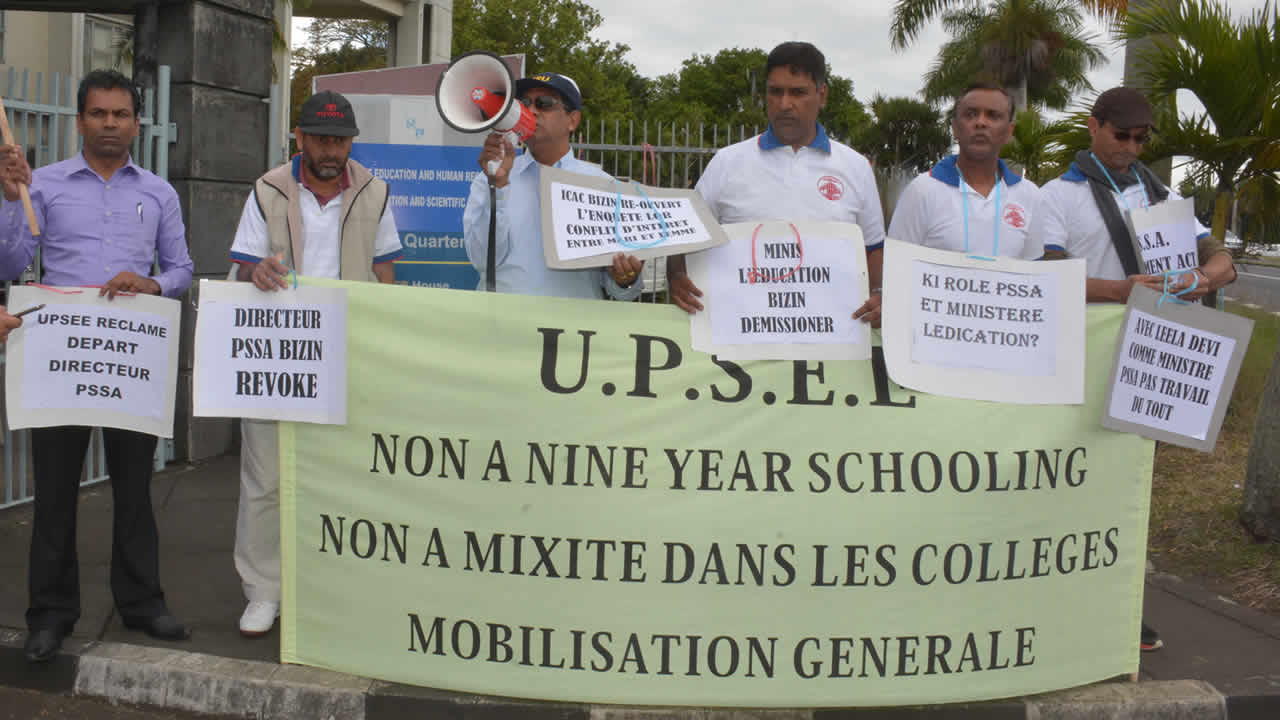 Ils réclament la démission de la ministre.Le Private Secondary Schools Authority (PSSA) Amendment Bill a été adopté au Parlement le 1er septembre. L’Union of Private Secondary Education Employees (UPSEE) tiendra une série de manifestations. La première a eu lieu, le vendredi 16 septembre, à la MITD House de Phœnix, siège du ministère de l’Éducation.