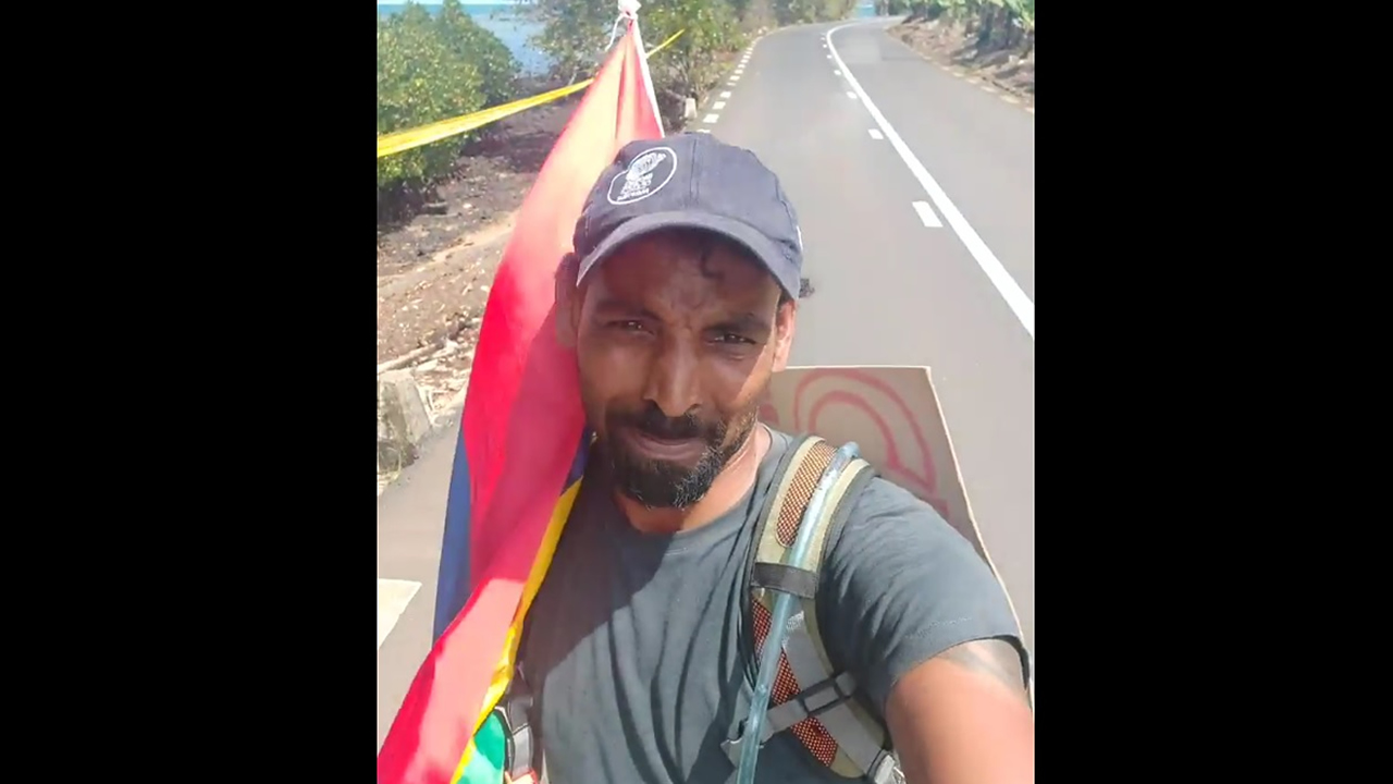 Kenny Newman a marché pendant 48 heures de Grand-Gaube à Mahébourg pour se rendre à la manifestation qui s’y tient ce samedi 12 septembre 2020. Les internautes ont suivi son périple en direct sur Facebook.