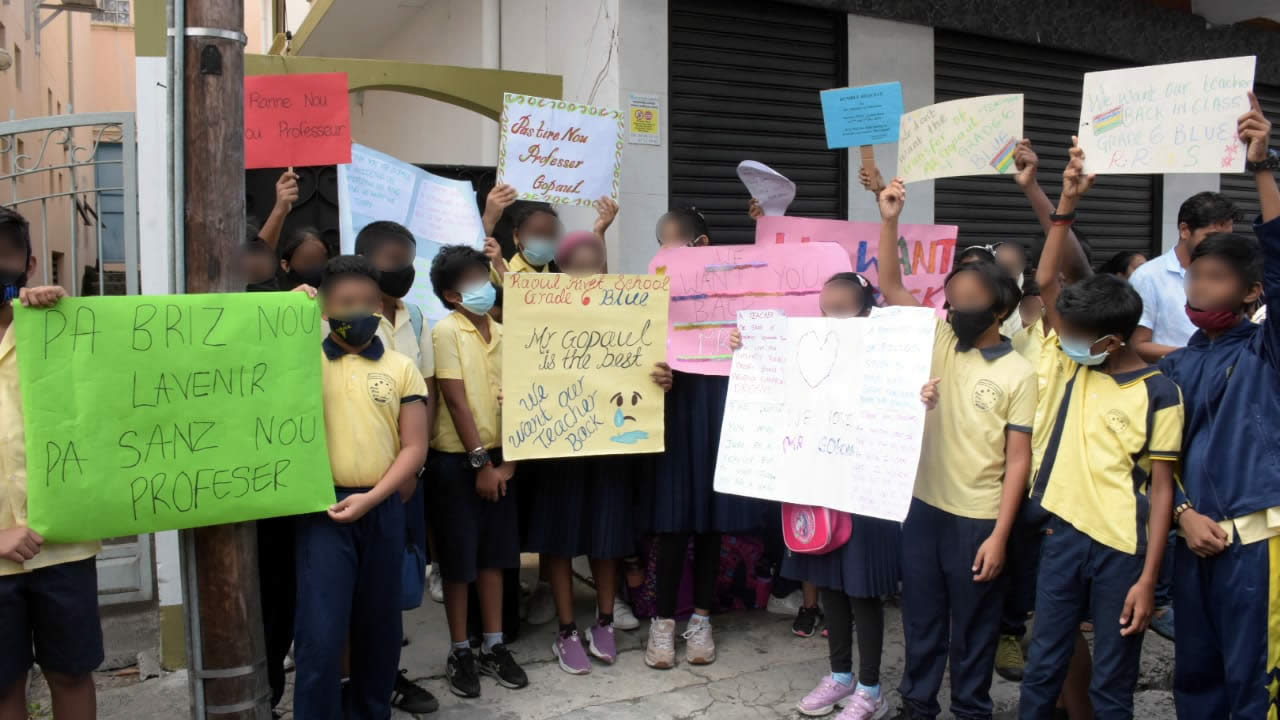 Ils étaient munis de pancartes « Pa briz nou lavenir », « We want our teacher back », «Ran nou nou profeser ». Les parents d’élèves de l'école primaire Raoul Rivet, à Port-Louis, n'en démordent pas. Ils dénoncent le transfert d’un enseignant qu’ils qualifient d’abusif. Plusieurs d’entre eux ainsi que certains élèves ont manifesté ce lundi matin, 9 novembre, devant cette école du gouvernement.