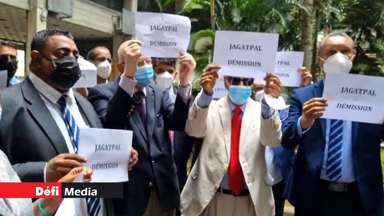 Peu avant le début de la séance parlementaire de ce vendredi, tous brandissaient un papier avec l’inscription « Jagutpal - Demission ». Ce après qu’un ultimatum a été lancé au gouvernement pour que le ministre de la Santé Kailesh Jagutpal « step down » d’ici ce vendredi. Pour cause, l’achat controversé de Rs 79 millions pour les comprimés Molnupiravir par le ministère de la Santé pour le traitement des patients positifs à la Covid-19.