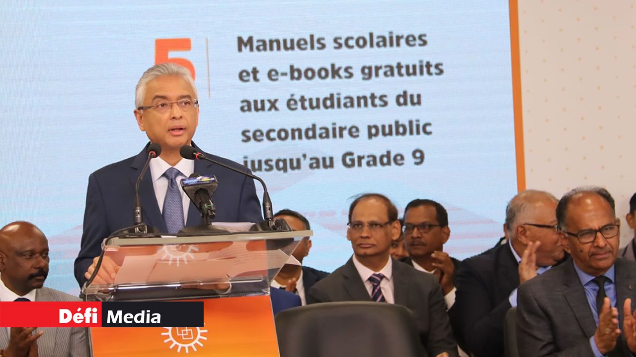 Parmi les quinze mesures phares annoncées par Pravind Jugnauth : les élèves du secondaire bénéficieront des manuels scolaires gratuits jusqu'au Grade 9 à partir de l'année prochaine ; le rapport du Pay Research Bureau sera effectif à partir de janvier 2020 ; la pension de vieillesse passera à Rs 9 000 à partir de décembre 2019 pour atteindre Rs 13 500 au cours du «prochain mandat» de Pravind Jugnauth s'il remporte les législatives ; le taux du salaire minimum sera révisé en janvier 2020 ; l'abolition de la taxe immobilière dans les villes pour les propriétaires d'une seule maison ; l'allocation de l'Etat pour venir en aide aux patients devant se faire opérer à l'étranger passera de Rs 800 000 à Rs 1 million et un proche ou parent du patient bénéficiera d'un billet d'avion gratuit ; la création de 10 000 emplois pour les jeunes dans la fonction publique au cours des cinq prochaines années et une politique de zéro plastique à l'horizon de 2030.