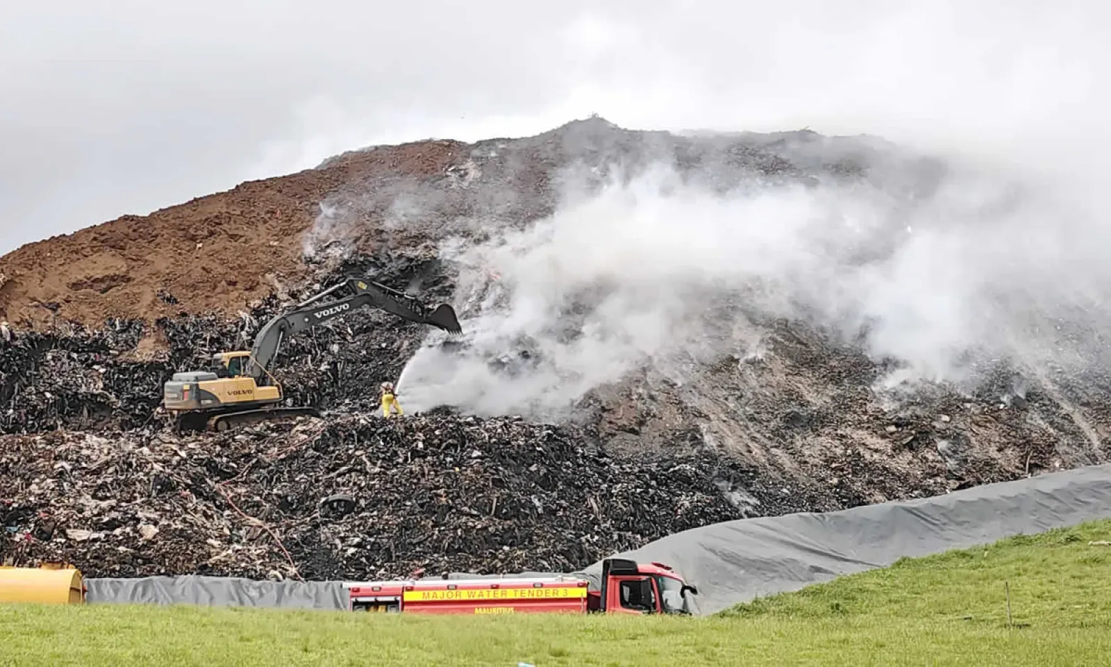 Accompagné de sa Junior Minister, Joanna Bérenger, il a évoqué les efforts en cours pour maîtriser l’incendie. Il a également remercié la population pour les dons de terres sollicités récemment, soulignant que ces contributions ont permis des avancées significatives.